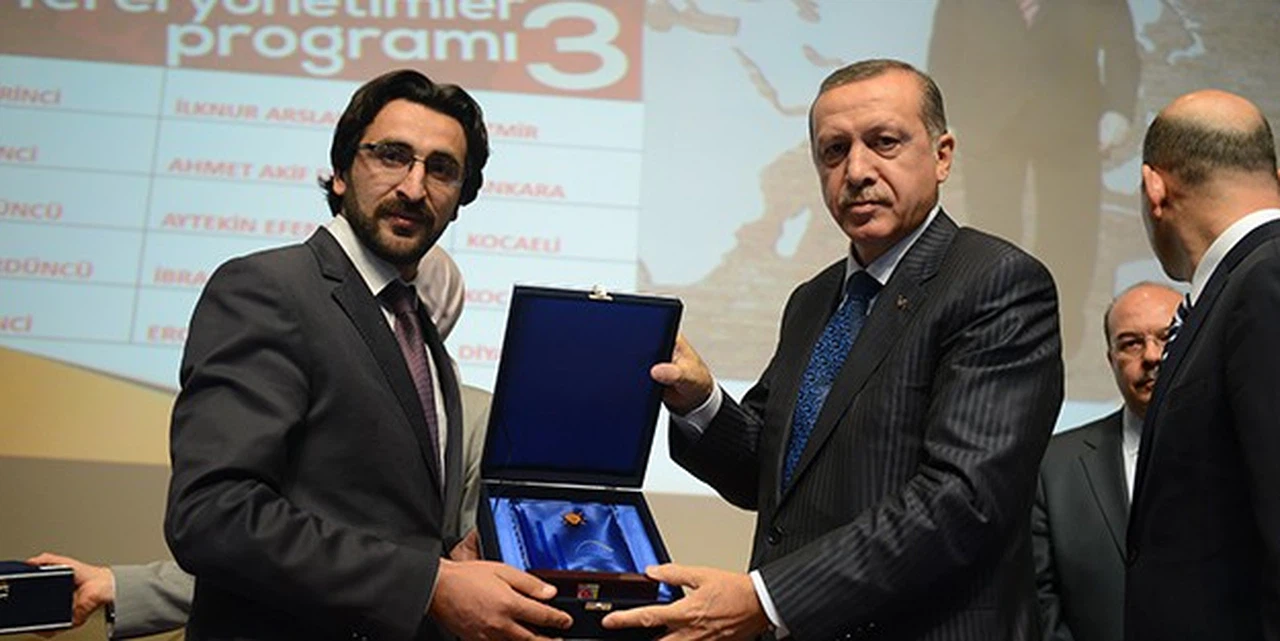AK Parti Genel Merkezi tarafından Gümüşhane’de gerçekleştirilen siyaset akademisi eğitim programı sonucunda yapılan sınavda birinci olan Zekai Taşkın, plaketini Başbakan Recep Tayyip Erdoğan’ın elinden aldı.