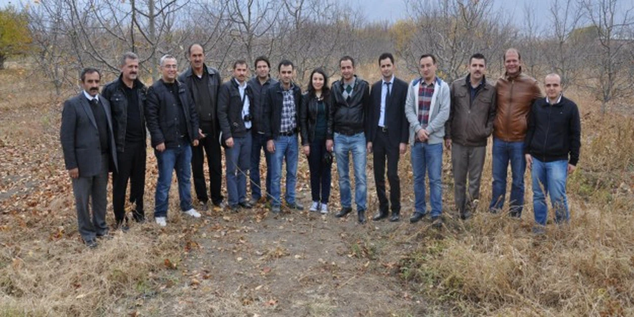 Eğitim Çalışmasının ikinci bölümünde ise pratik uygulamaların yerinde gösterilmesi amacı ile İstasyon Müdürlüğünün aşılı ceviz, bodur, yarı bodur ve standart elma ağaçlarının bulunduğu araziye gidilerek budama uygulaması ve çeşitleri, anaç seçiminin önemi, cevizde meyve gözü ve çeşit değiştirme aşısı yapılmış ceviz ağaçlarında don zararı belirtileri gibi konularda doyurucu ve detaylı bilgiler verildi.