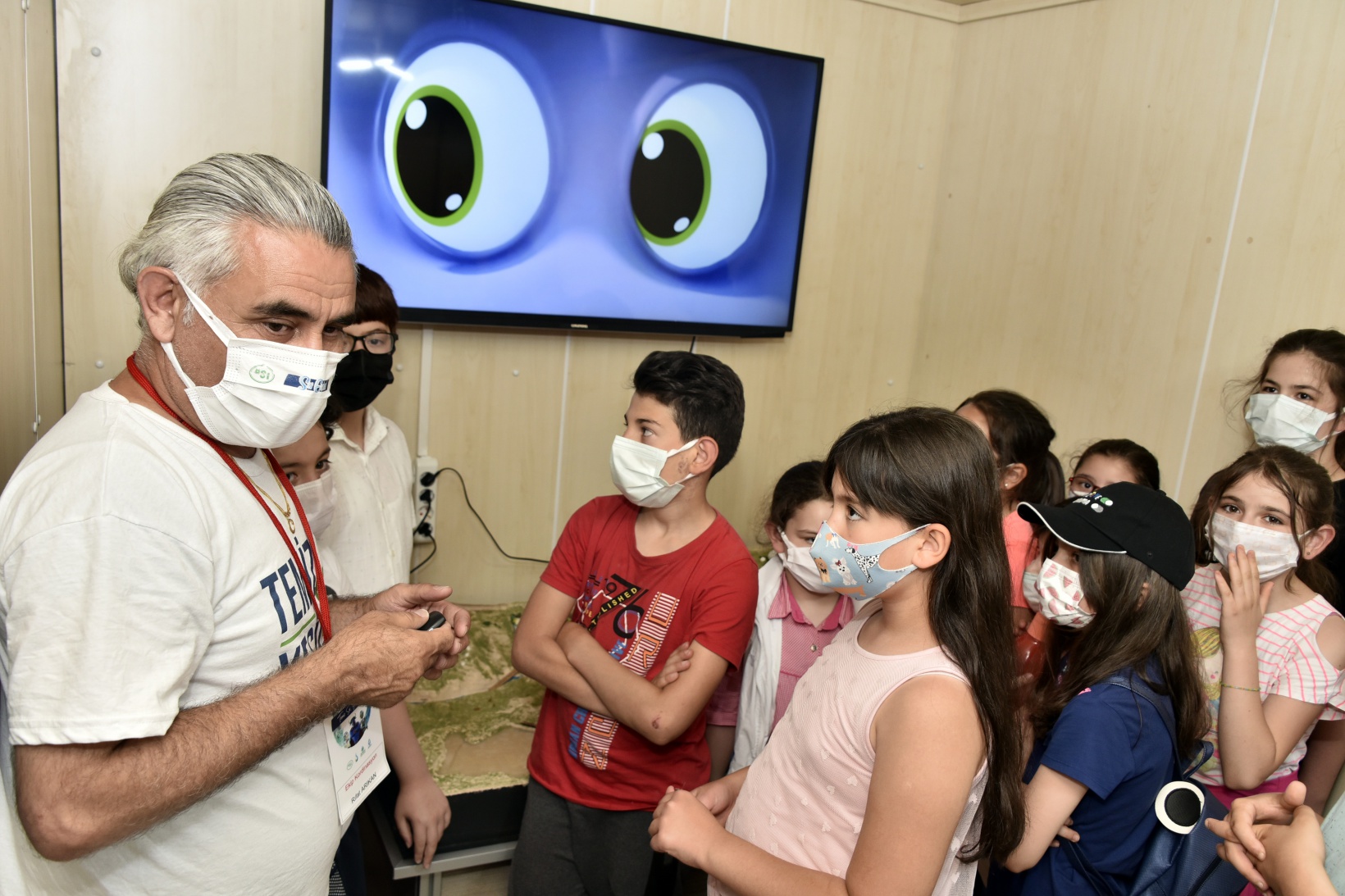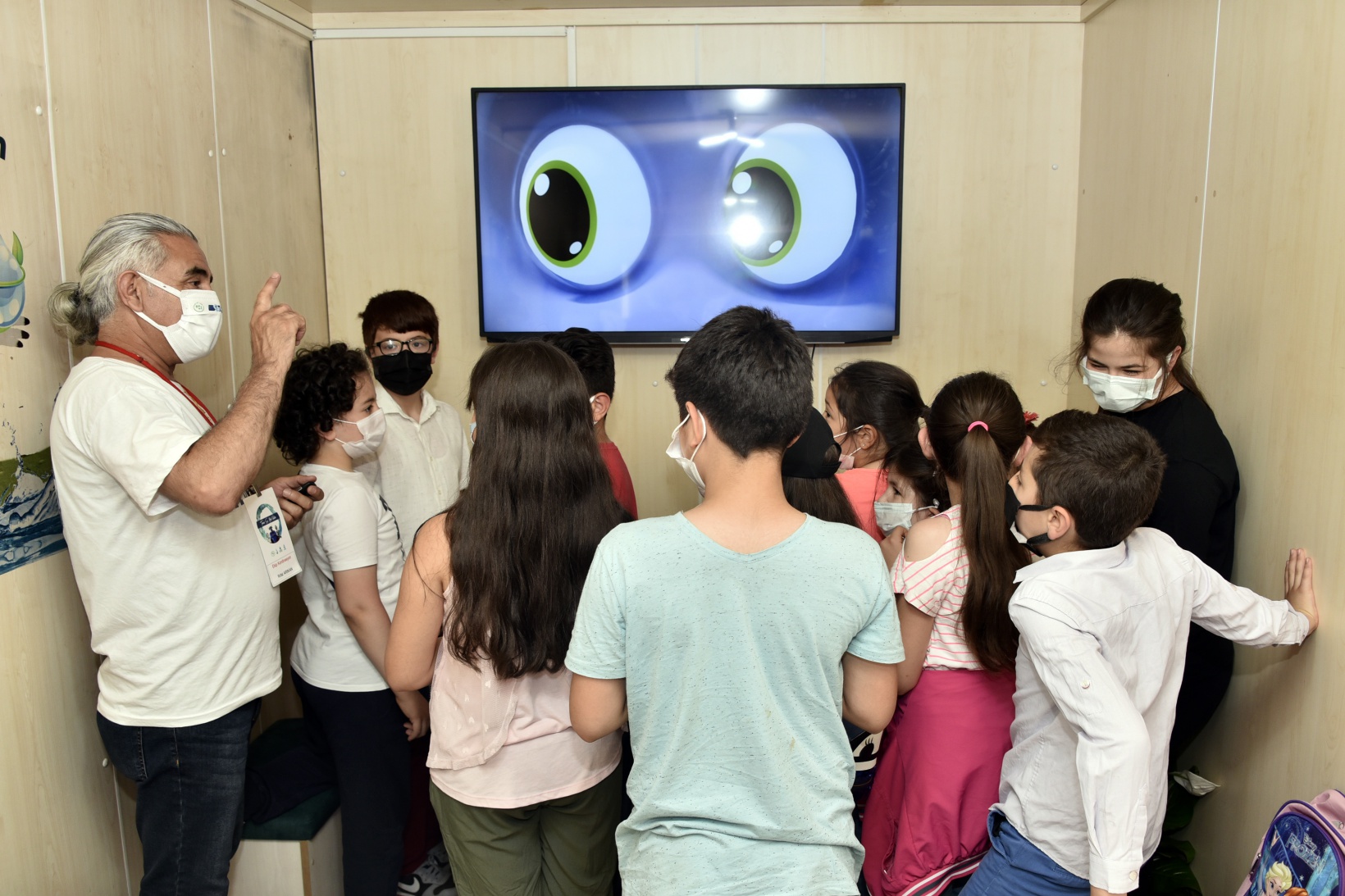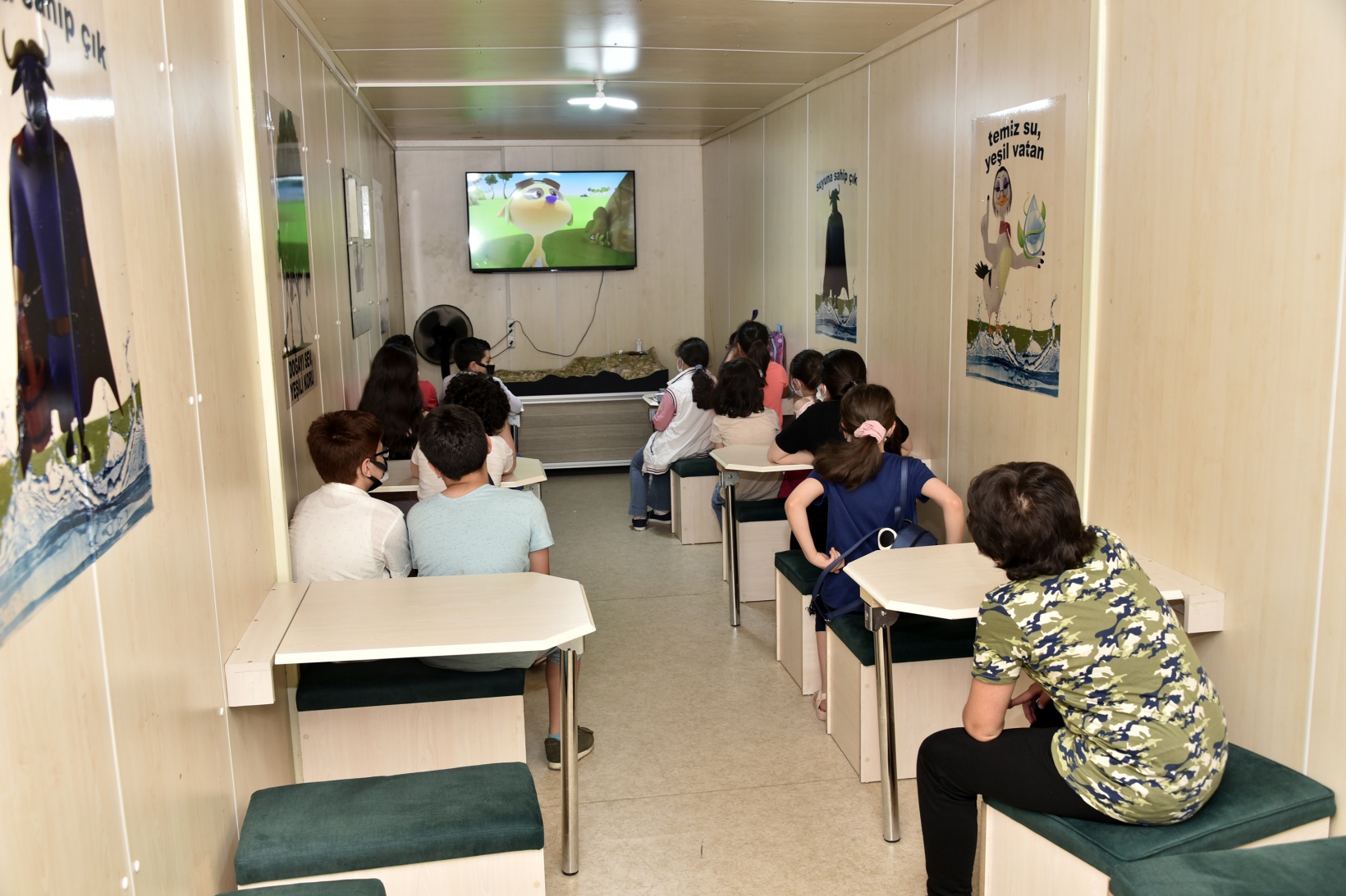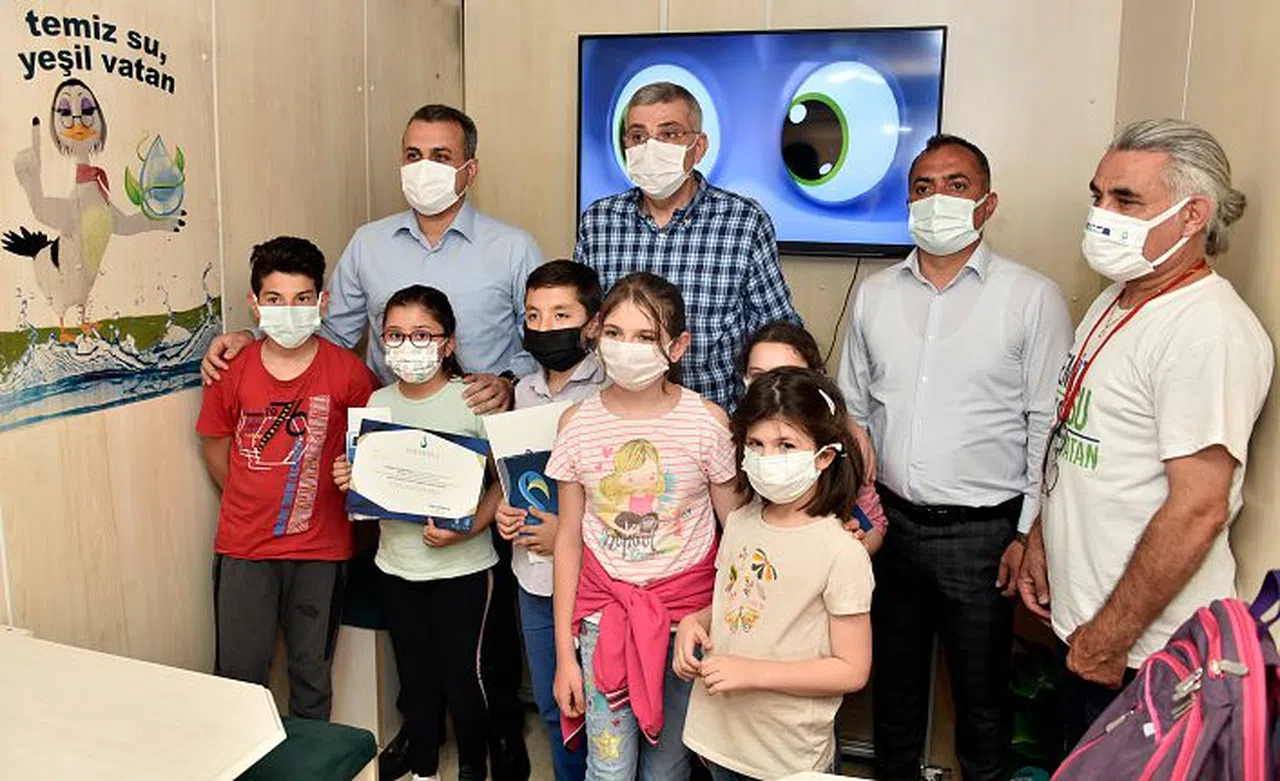 Mobil eğitim tırında çocuklar hem eğlendi hem suyun tasarruflu ve bilinçli kullanılması yönünde eğitici bilgiler aldı.