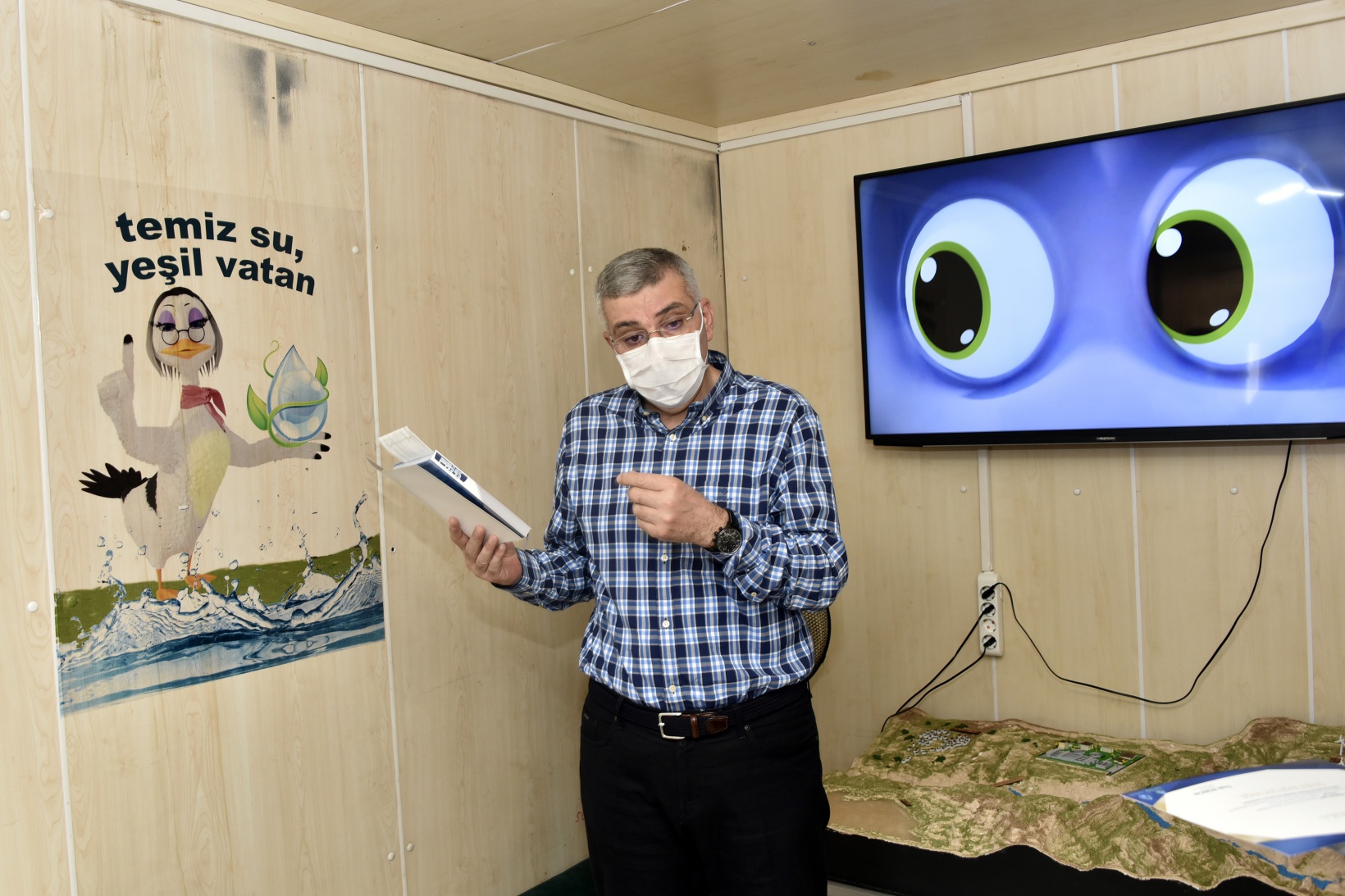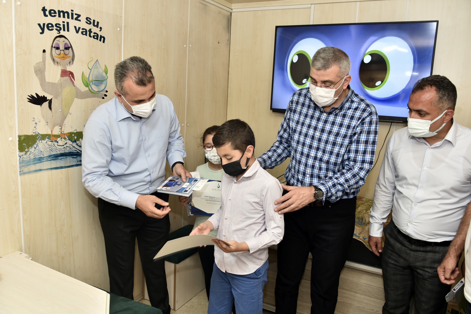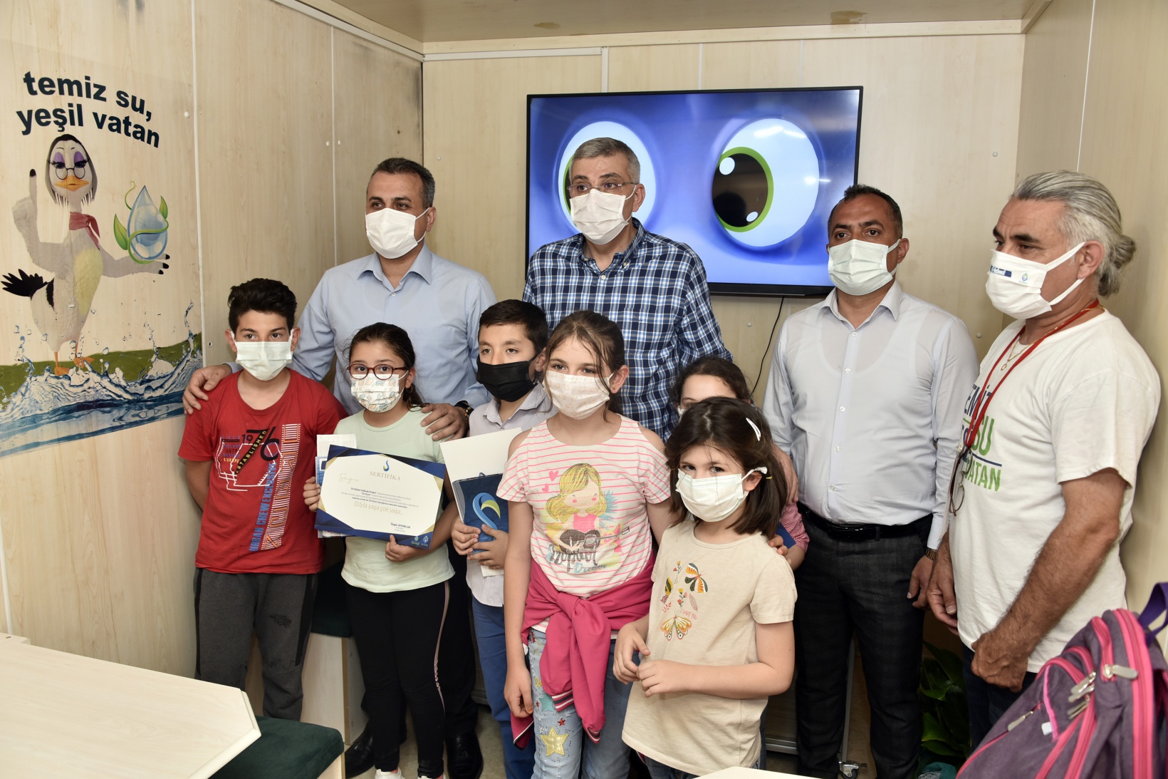 İçerisinde eğitici ekipmanların yer aldığı mobil eğitim tırı ve su elçileri kahramanlarının maskotlarının hazır olduğu programda çocuklar su elçileri maskotlarıyla eğlendi.