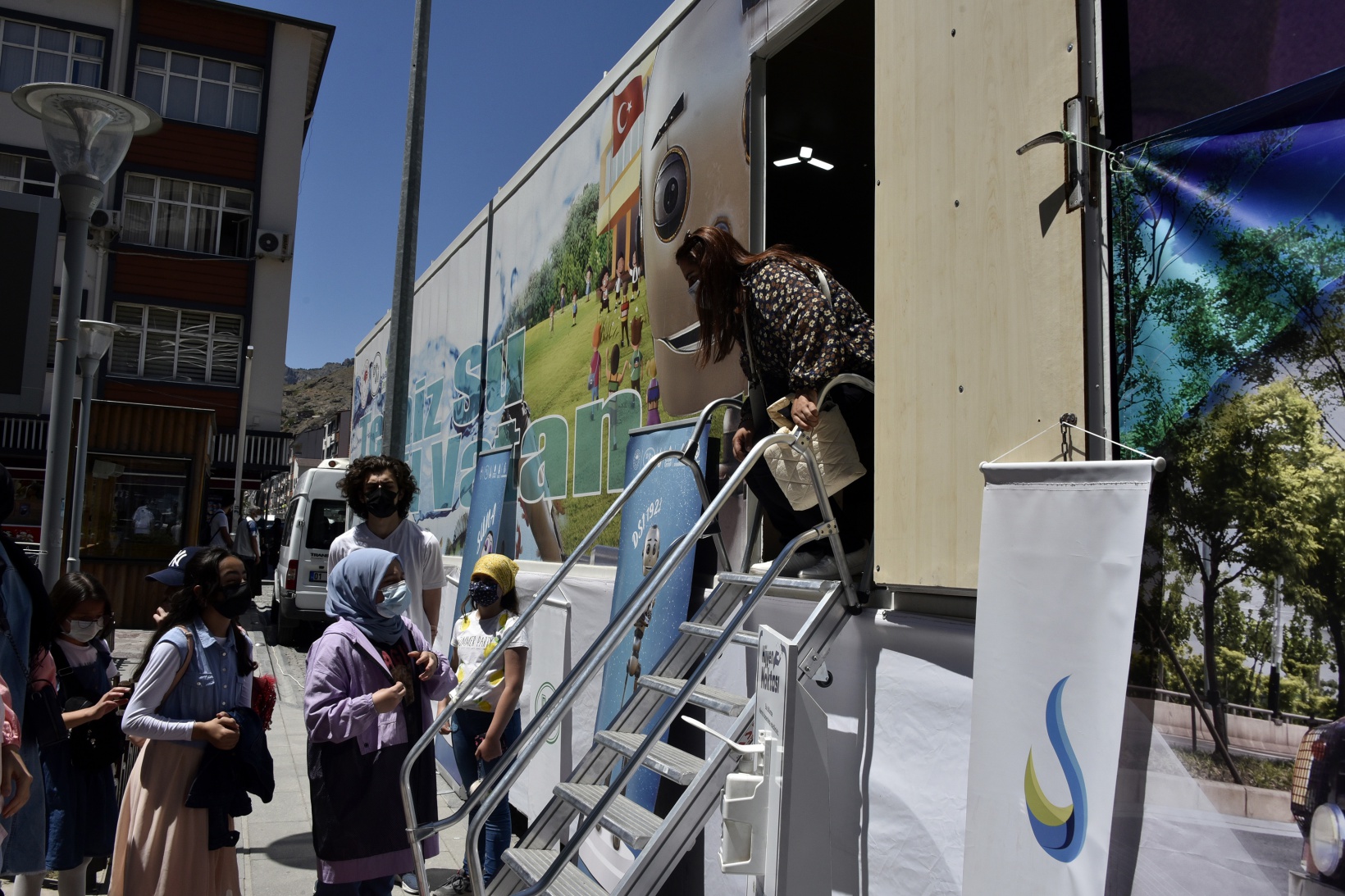 “Temiz su, yeşil vatan” sloganıyla Samsun’dan yola çıkan mobil eğitim tırı Gümüşhane’de Fatih Parkı önünde ziyarete açılırken, suyun öneminin anlatıldığı, maskot ve içerisindeki eğitim materyalleriyle etkinliğe çocuklar yoğun ilgi gösterdi.