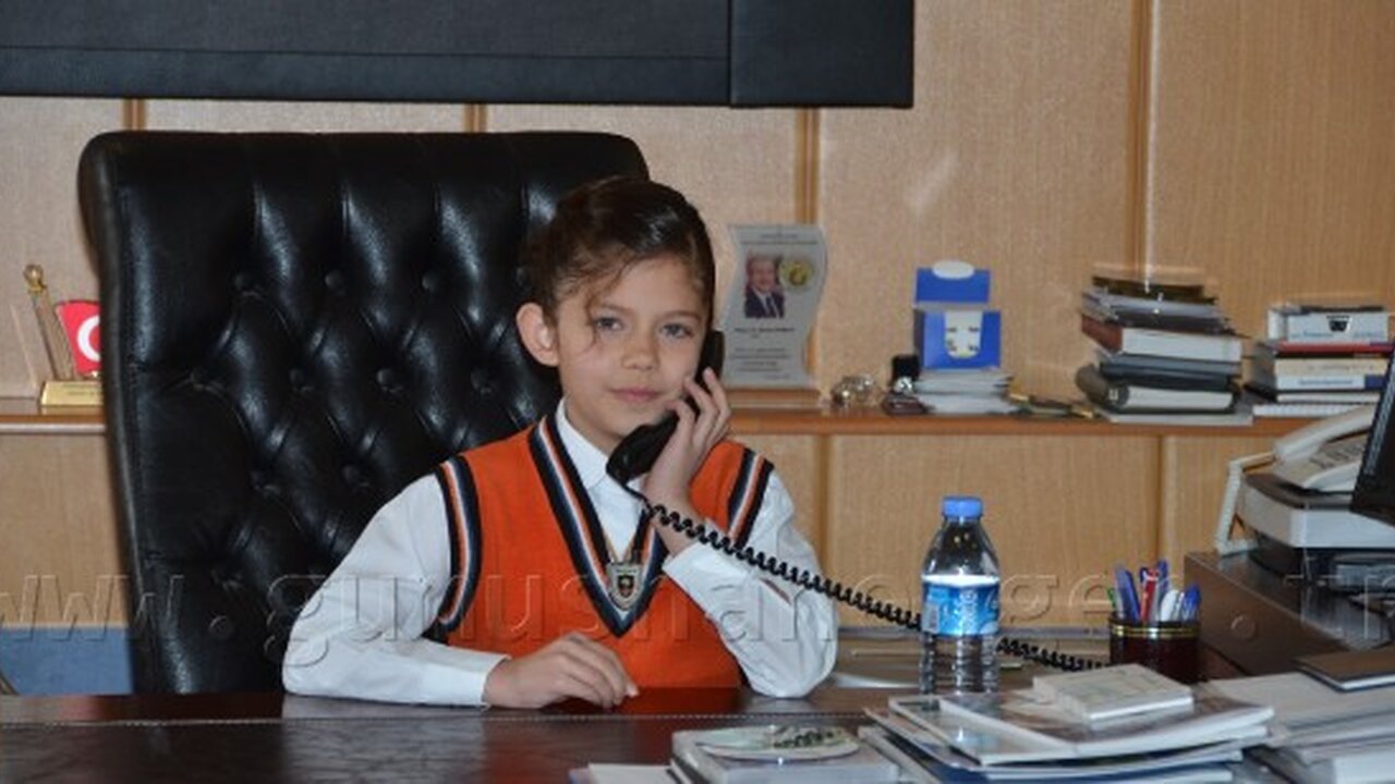 Gümüşhane Valisi Dr. Yusuf Mayda, 23 Nisan Ulusal Egemenlik ve Çocuk Bayramı dolayısıyla koltuğunu temsili olarak Atatürk Ortaokulu öğrencisi Elif Sude Aslana devretti.