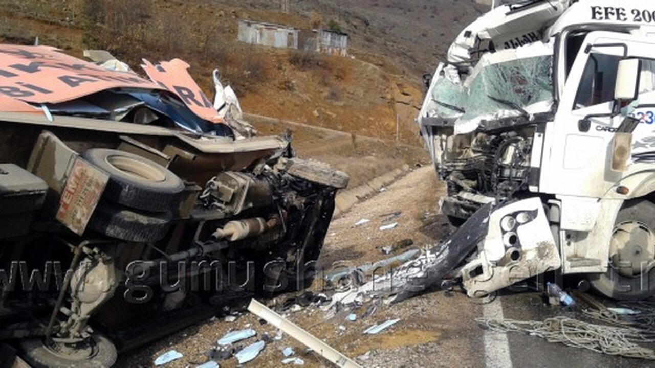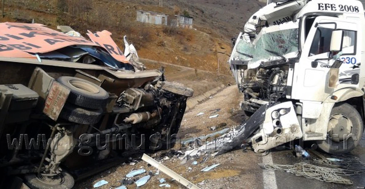 Edinilen bilgilere göre bugün saat 09.30 sıralarında meydana gelen kazada, Kelkit ilçesinden Gümüşhane istikametine gelen Muhammet Yetim (33) yönetimindeki 34 EN 7613 plakalı Belediyeler Birliğine ait tıbbi atık kamyonu, Yeniköy köyüne bağlı Ulukale mahallesi yol ayrımında karşı yönden gelen Süleyman Taşdemir (25) yönetimindeki 38 BB 288 plakalı başka bir kamyonla çarpıştı.