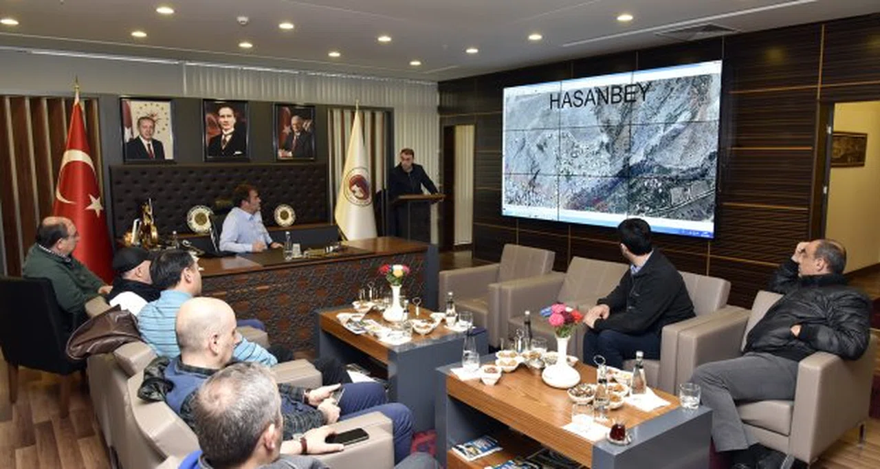 Belediye Başkanı Çimen'in makamında proje üzerinde fikir alışverişinde bulunan heyete, daha sonra 528 konutun uygulanacağı alanı inceledi.