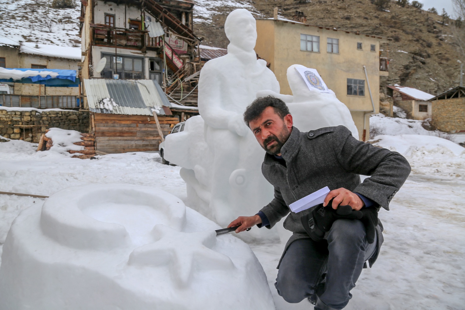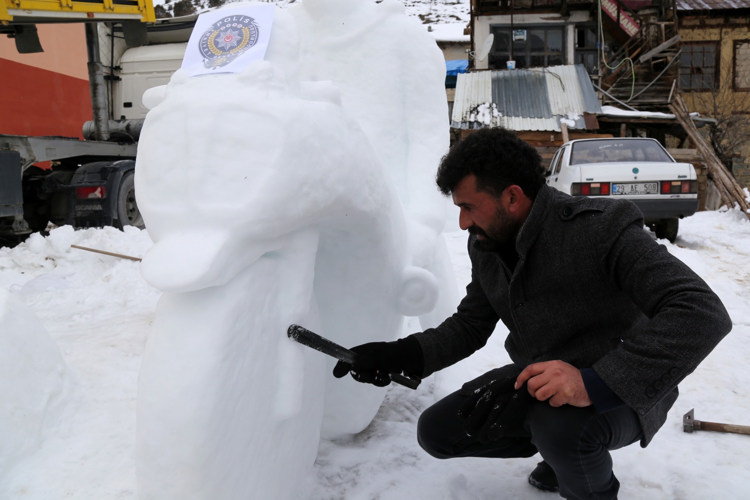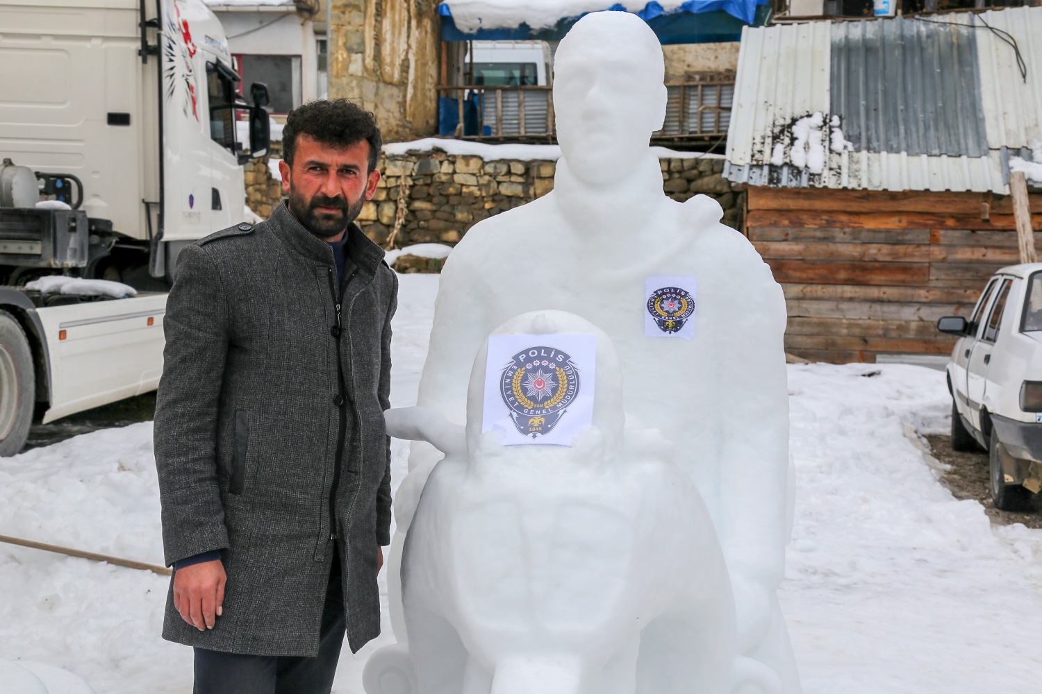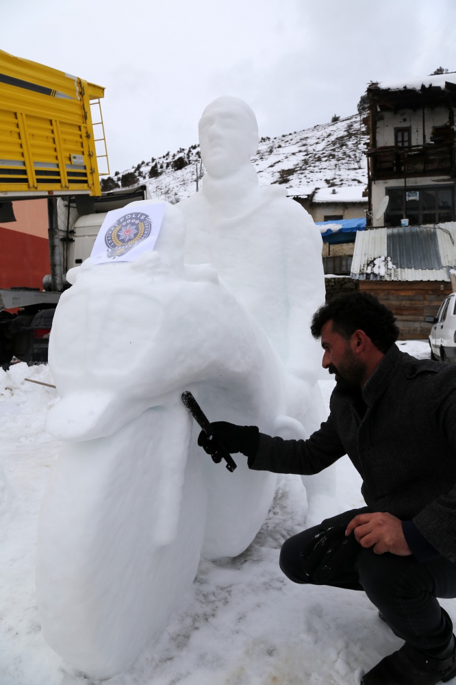 Önceki yıllarda nesli tükenmekte olan kutup ayıları ve 15 Temmuz hain darbe girişimini anlatan heykeller yapan Oral bu kez Şehit Polis Memuru Fethi Sekin’in kardan heykelini yaptı.