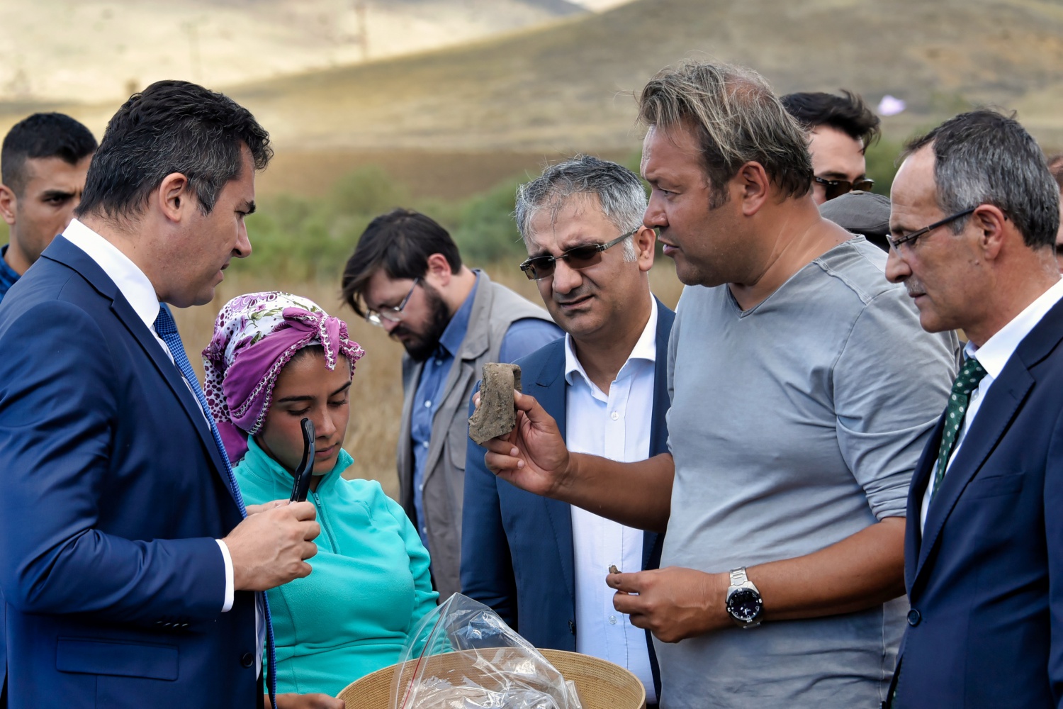 Vali Memiş, kazı alanındaki incelemelerin ardından bu kez alandan çıkan eserleri görerek hakkında bilgiler aldı.