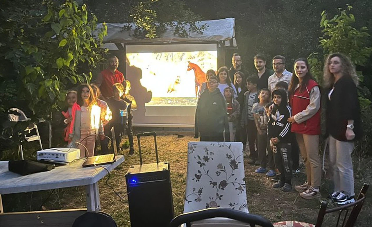 Yaz aylarında yoğun göç alan köylerde çocuklara yönelik açık hava sinema etkinliği başlatan kurum, patlamış mısır ikramıyla köylerdeki çocuklara sinema keyfi yaşatıyor.