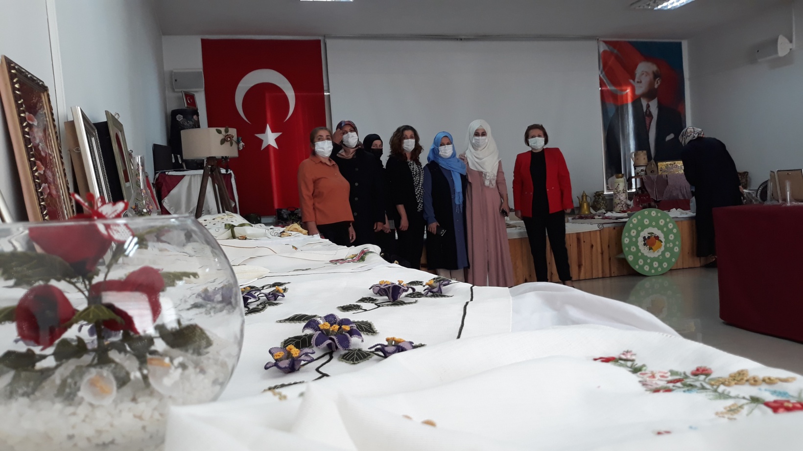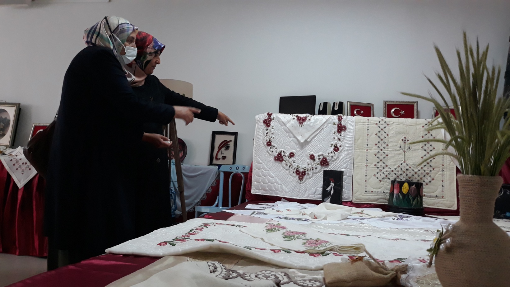 Covid-19 salgını gölgesinde açılan kurslar zaman zaman kesintilere uğrasa da 8 usta öğreticinin öncülüğünde 100’ün üzerinde kursiyer el becerilerini sergileme fırsatı buldu. Toplam 4 aylık bir süre içerisinde ilmek ilmek işlenen sanat eserleri ile ilgili olarak sorularımızı cevaplayan Usta Öğretici Gülten Özer, çok kısa bir sürede, pandeminin zorluklarına karşın bu denli zengin bir sergi açmış olmanın mutluluğunu yaşadıklarını söyledi.