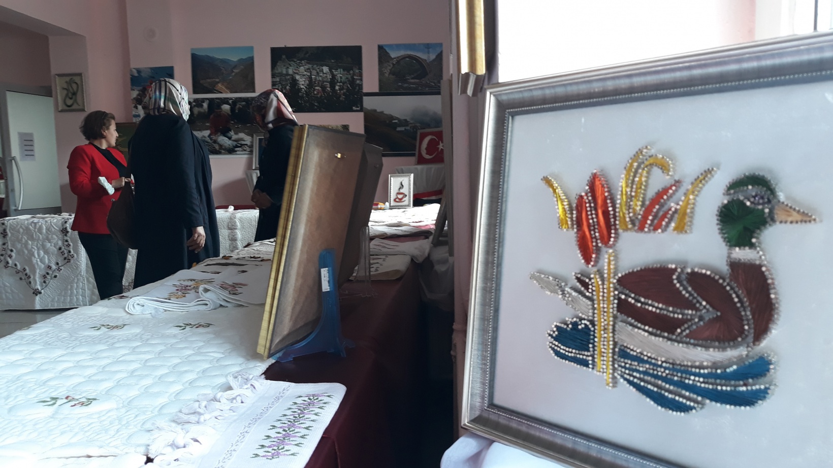 Başta eğitime katılan kursiyerler olmak üzere İlçe Kaymakamı Ömer Said Karakaş, İlçe Milli Eğitim Müdürü Eyyüp Zengin ve Halk Eğitim Müdürü Necmi Bayram’a teşekkür eden Özer, “Kadınlarımızın el becerileri takdire şayan. El nakışları, iğne oyaları, rölyefler, tel kırma, ahşap boyama, yöresel kıyafetler ve işlemeleri gibi onlarca farklı tarzda yapılmış adeta sanat eserlerine imza attılar. Genelde her kursumuzun ürünlerini ayrı ayrı sergilerken bu kez karma bir sergi oluşturduk. Kurslarımız hali hazırda devam etmekle birlikte Hayat Boyu Öğrenme Haftası etkinlikleri kapsamında düzenlenen bu sergimiz Cuma gününe kadar açık olacak. Kurslarımızın tamamlanması ile birlikte tüm kursiyerlerimiz sertifika almaya hak kazanmış olacaklar. Bu ve benzeri kurslarımızda tüm vatandaşlarımızı aramızda görmek istiyoruz” dedi.