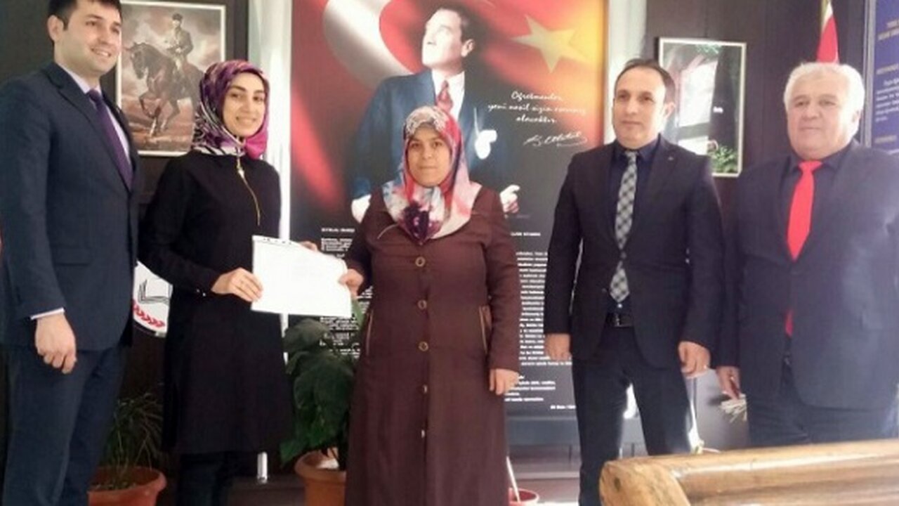 Torul Halk Eğiti Merkezinde düzenlenen törende 4 Ekim- 22 Aralık 2016 tarihleri arasında düzenlenen 120 saatlik okuma-yazma 1. kademe kursunda başarılı olan Esmira Dede ve 30.12.2016 tarihinde düzenlenen okuma-yazma 1. kademe seviye tespit sınavında başarılı olan Hatice Erdoğan’a belgeleri Torul Kaymakamı Mustafa Karali ve eşi Elif Karali tarafından verildi.
