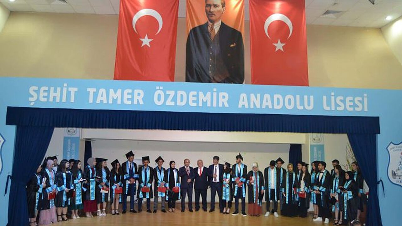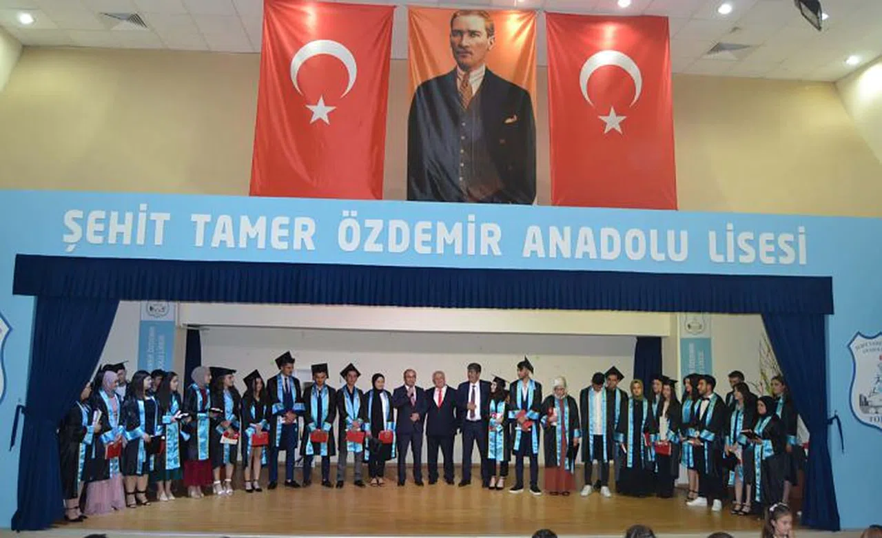 Şiir dinletisinin ardından mezuniyet belgelerini alan öğrencilere seslenen İlçe Milli Eğitim Müdürü Eyyüp Zengin, mutluluklarla dolu bir ömür, başarılarla dolu bir hayat hikayesi, vatana ve millete hizmet aşkıyla yanan bir yaşam temennisiyle yollarının açık olmasını dileyerek, 12 yıllık süreçte her zaman öğrencilere ve eğitim kurumlarına destek olan velilere de teşekkür etti.