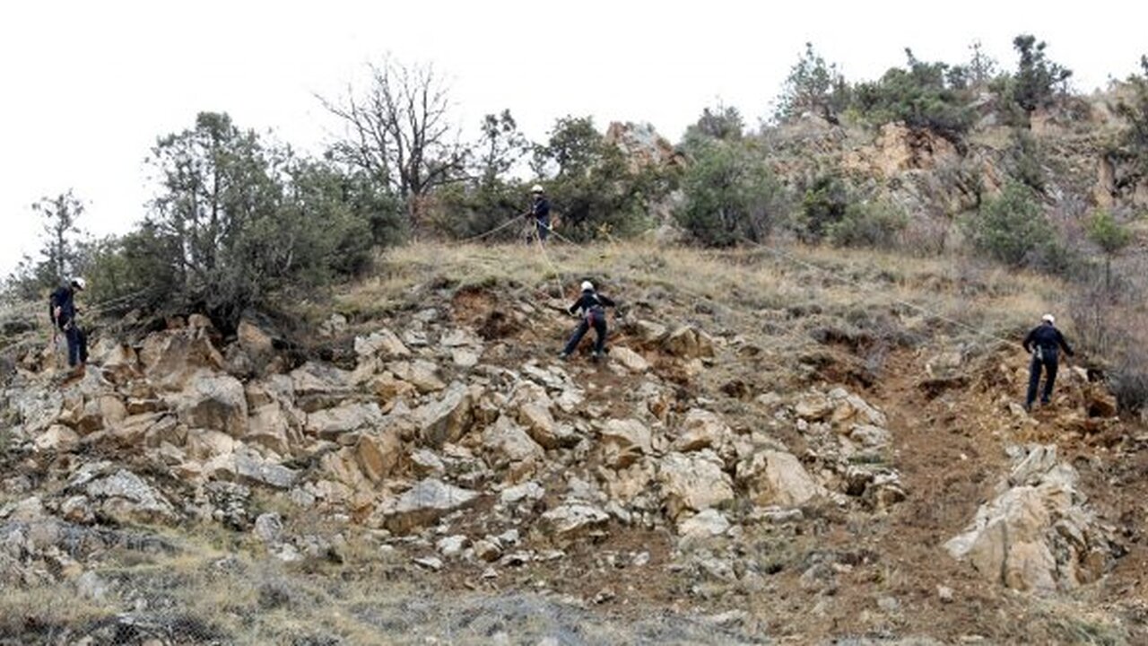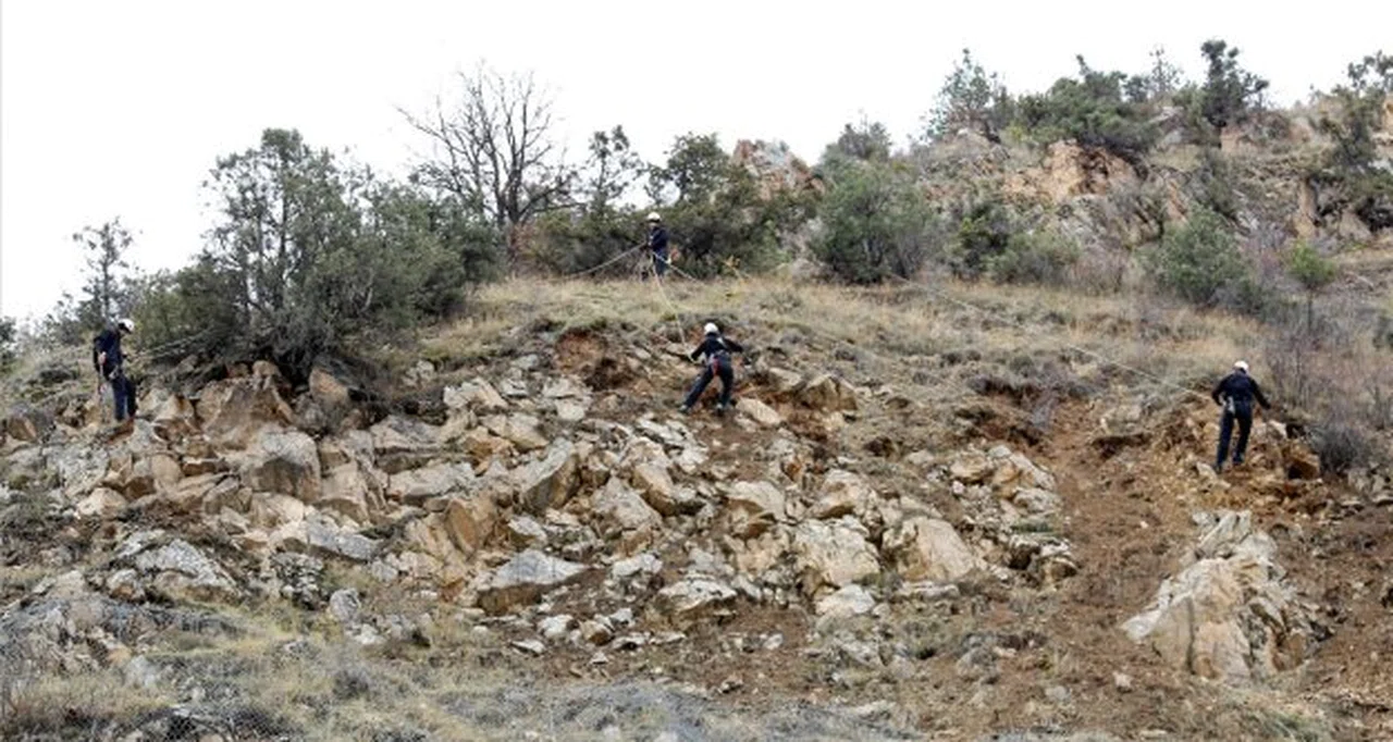 Çalışma kapsamında konusunda uzmanlaşmış ekip üyeleri kendilerini halatla bağlayıp aşağı doğru sarkarak yaklaşık 30 metrelik yamaçta bulunan muhtemel düşme tehlikesi bulunan kayaları yola düşürüyor.