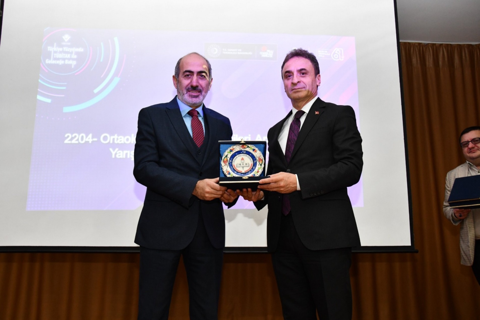 Program sonunda İl Milli Eğitim Müdürü Şener Doğan, TÜBİTAK projelerine katkı sağlayan isimlere plaket takdim etti.
