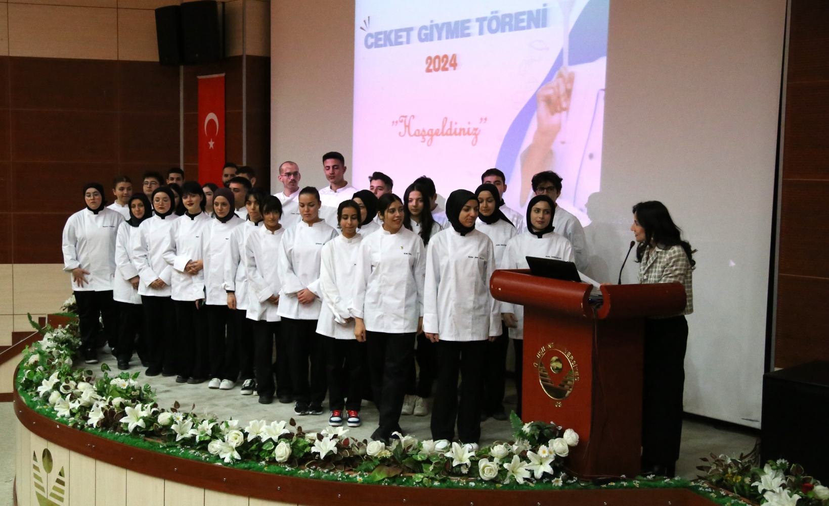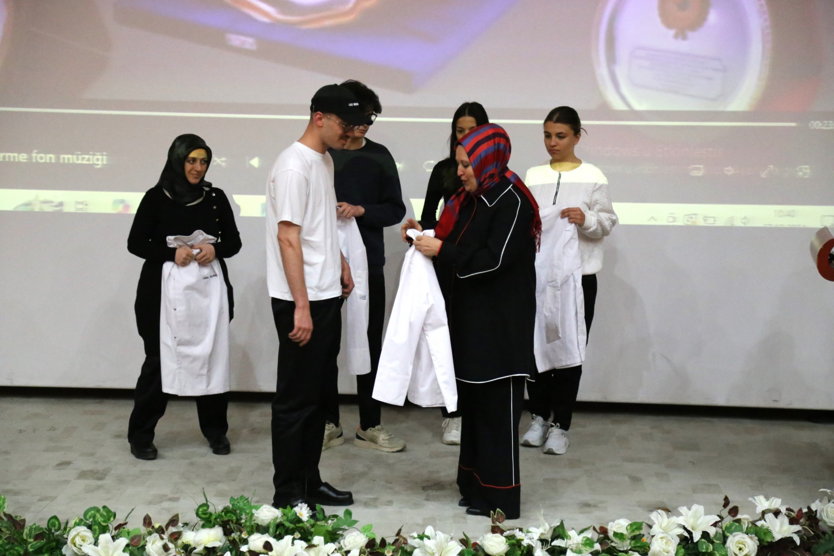 Yapılan konuşmaların ardından Prof. Dr. Sevim Beyza Öztürk Sarıkaya, Doç. Dr. Savaş Evren, Doç. Dr. İsmail Çalık, Doç. Dr. Fazıl Kaya, Dr. Öğr. Üyesi Seda Kamber Taş, Dr. Öğr. Üyesi Murat Ödemiş, Öğr. Gör. Dr. Sedat Taş ve Arş. Gör. Aleyna Gün tarafından öğrencilere şef önlükleri giydirildi.