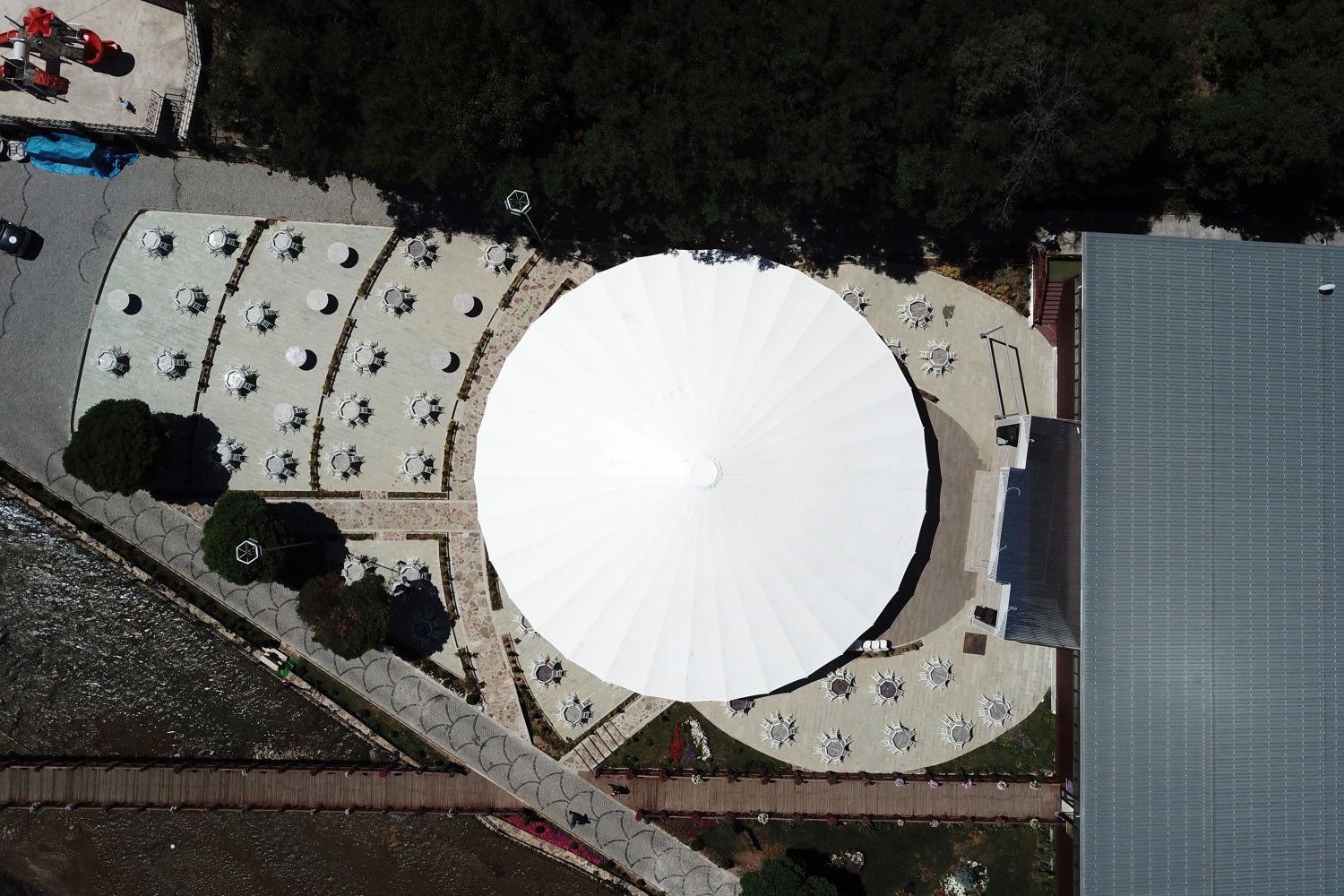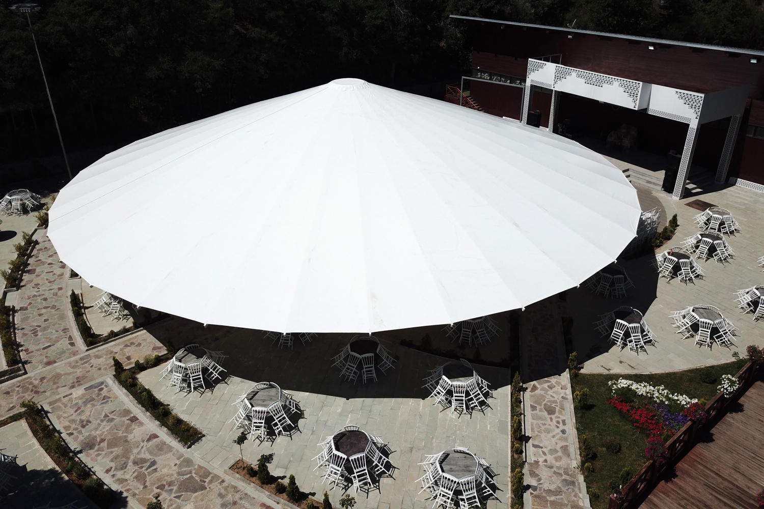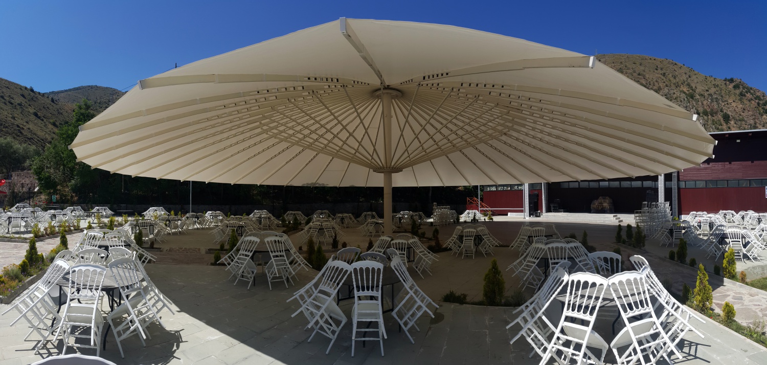 Gümüşhane Belediyesi tarafından yaklaşık bir yıl önce yeniden düzenlenerek halkın hizmetine sunulan Sema Doğan Yaşam Alanında düğünlerin yapıldığı etkinlik alanına vatandaşların yağmur ve güneşten korunması için Türkiye’nin en büyük açılıp kapanabilen şemsiyesi yaptırıldı.