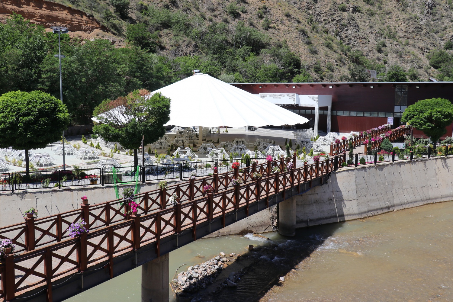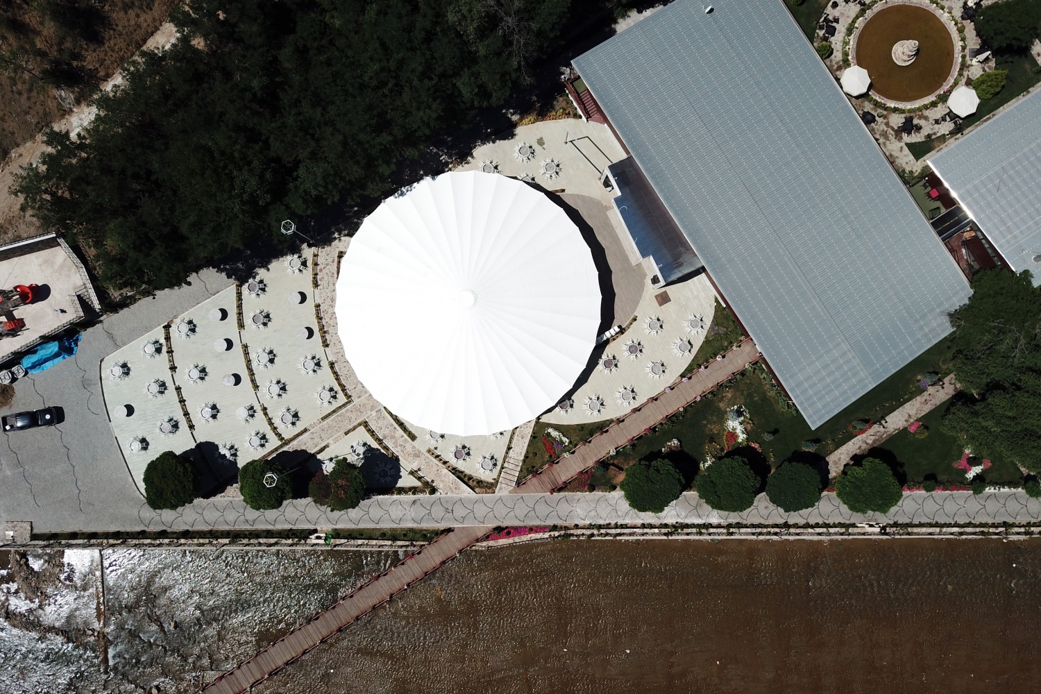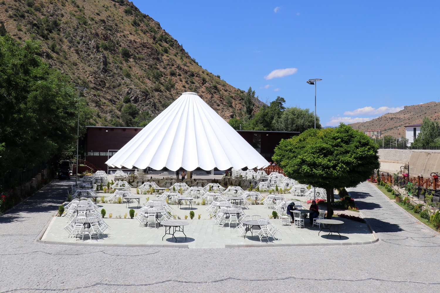 Gümüşhane Belediyesi tarafından yaklaşık bir yıl önce yeniden düzenlenerek halkın hizmetine sunulan Sema Doğan Yaşam Alanında düğünlerin yapıldığı etkinlik alanına vatandaşların yağmur ve güneşten korunması için Türkiye’nin en büyük açılıp kapanabilen şemsiyesi yaptırıldı.
