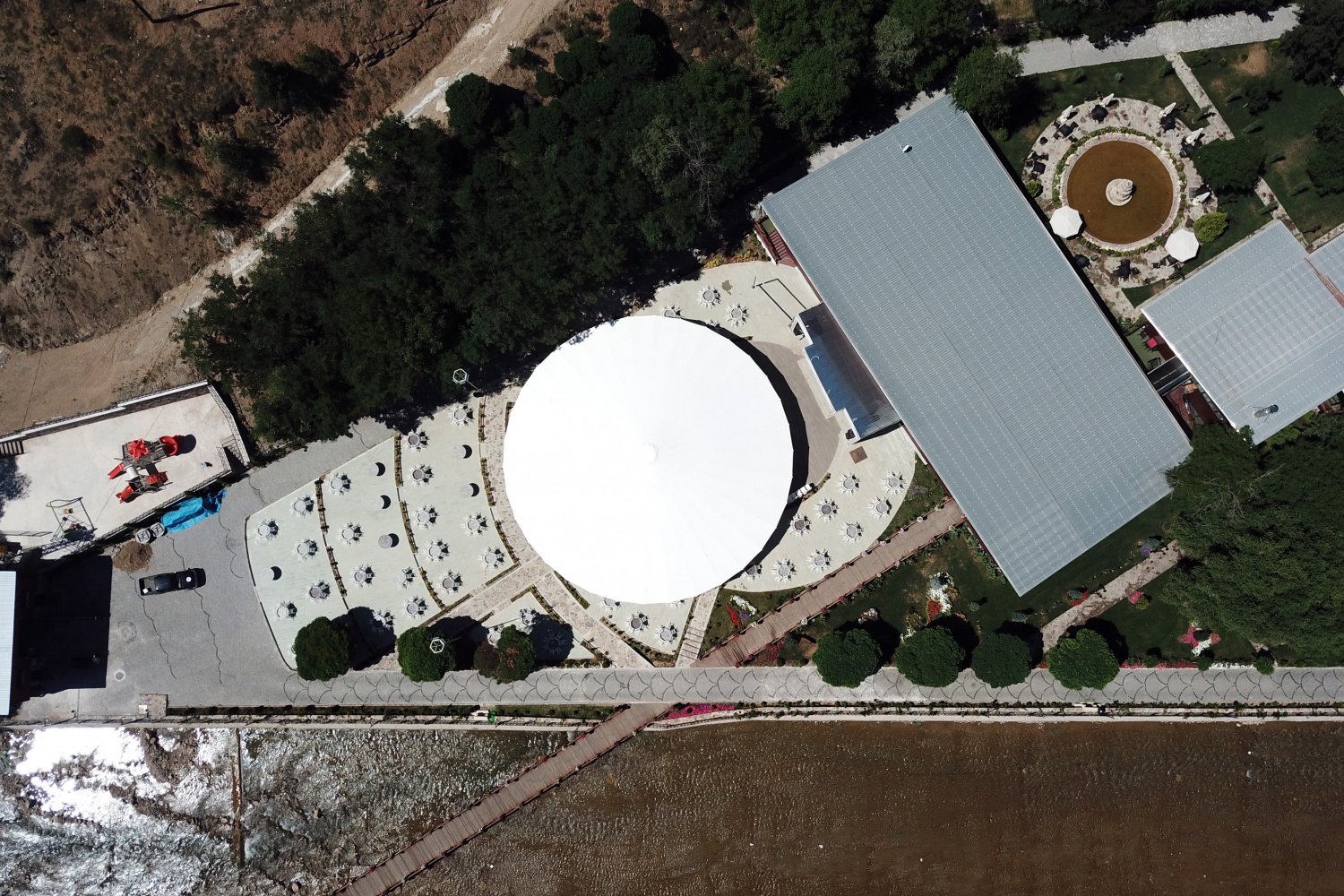 Bağlarbaşı Mahallesinde bulunan ve geçen yıl Ağustos ayından bugüne yaklaşık 250 bin kişinin faydalandığı Sema Doğan Yaşam Alanının bin kişi kapasiteli düğün ve diğer programların yapıldığı etkinlik alanı su hidroliğiyle açılıp-kapanabilen dev şemsiye ile kapatıldı.