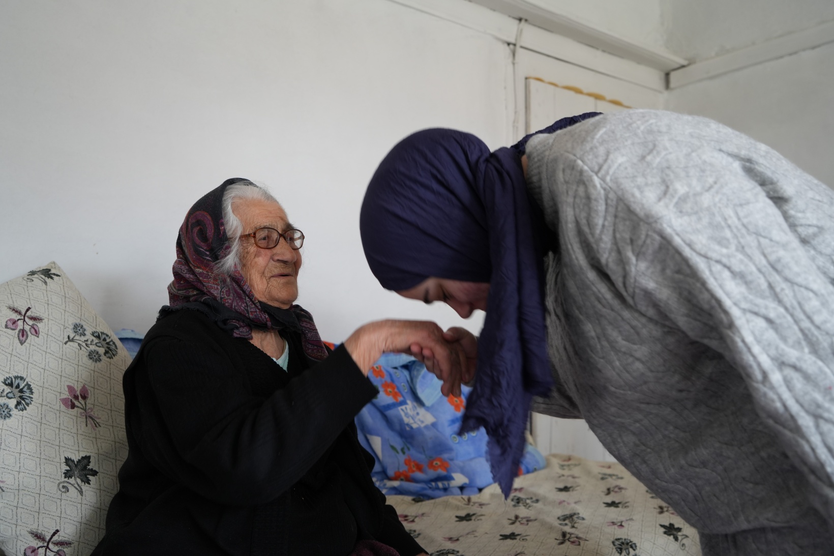 Üniversite öğrencisi genç kızlardan 98 yaşındaki Hüsniye nineye duygulandıran dokunuş