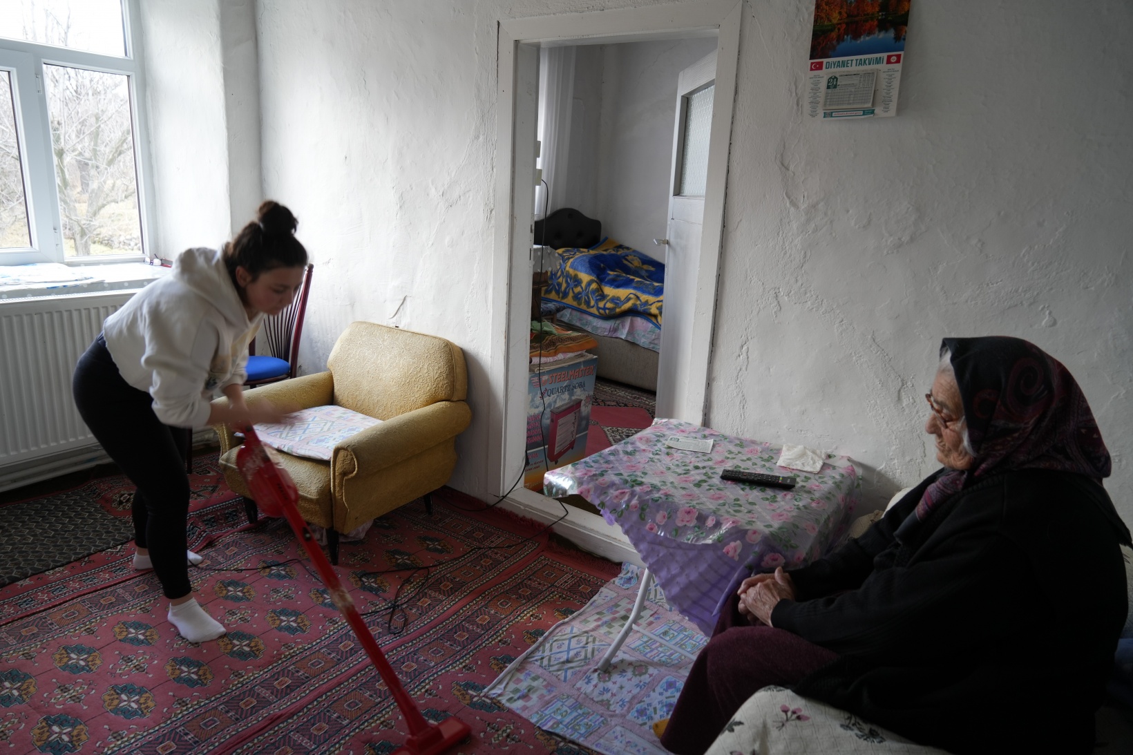 Evin temizliğini yapan öğrenciler çay demleyerek yaşlı kadınla sohbet etti. Hüsniye Kutlutan’ın ziyaretten çok memnun olduğunu söyleyen öğrenciler onu yalnız bırakmayacaklarını da ifade etti.