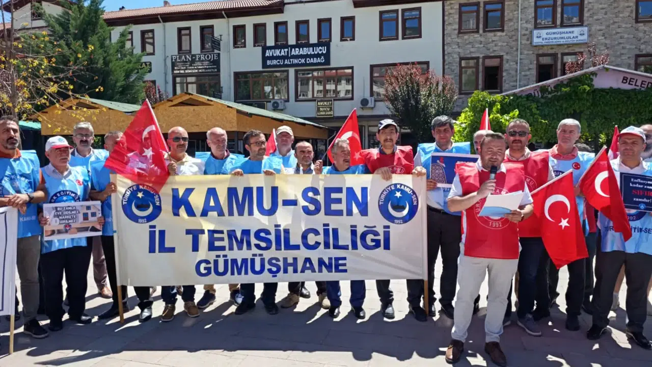 Gümüşhane Kamu-Sen İl Temsilciliği, 2,5 milyon kamu çalışanı ve 4 milyon emekliyi kapsayan toplu sözleşme görüşmelerinde hükümetin sunduğu zam teklifini 15 Temmuz Zafer Meydanı’nda düzenledikleri basın açıklamasıyla protesto etti.