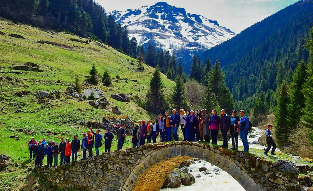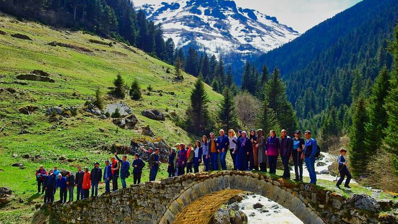 Bahar mevsimiyle birlikte yeşil örtüyle kaplanan bölgeyi çevreleyen zirvelerdeki kar kütleleriyle enfes manzaranın tadını çıkaran grup Doğu Karadeniz’in önemli turizm merkezlerinden Santa Antik Kentinde hem doğayla buluştu hem de tarihi yapıları inceleme fırsatı buldu.