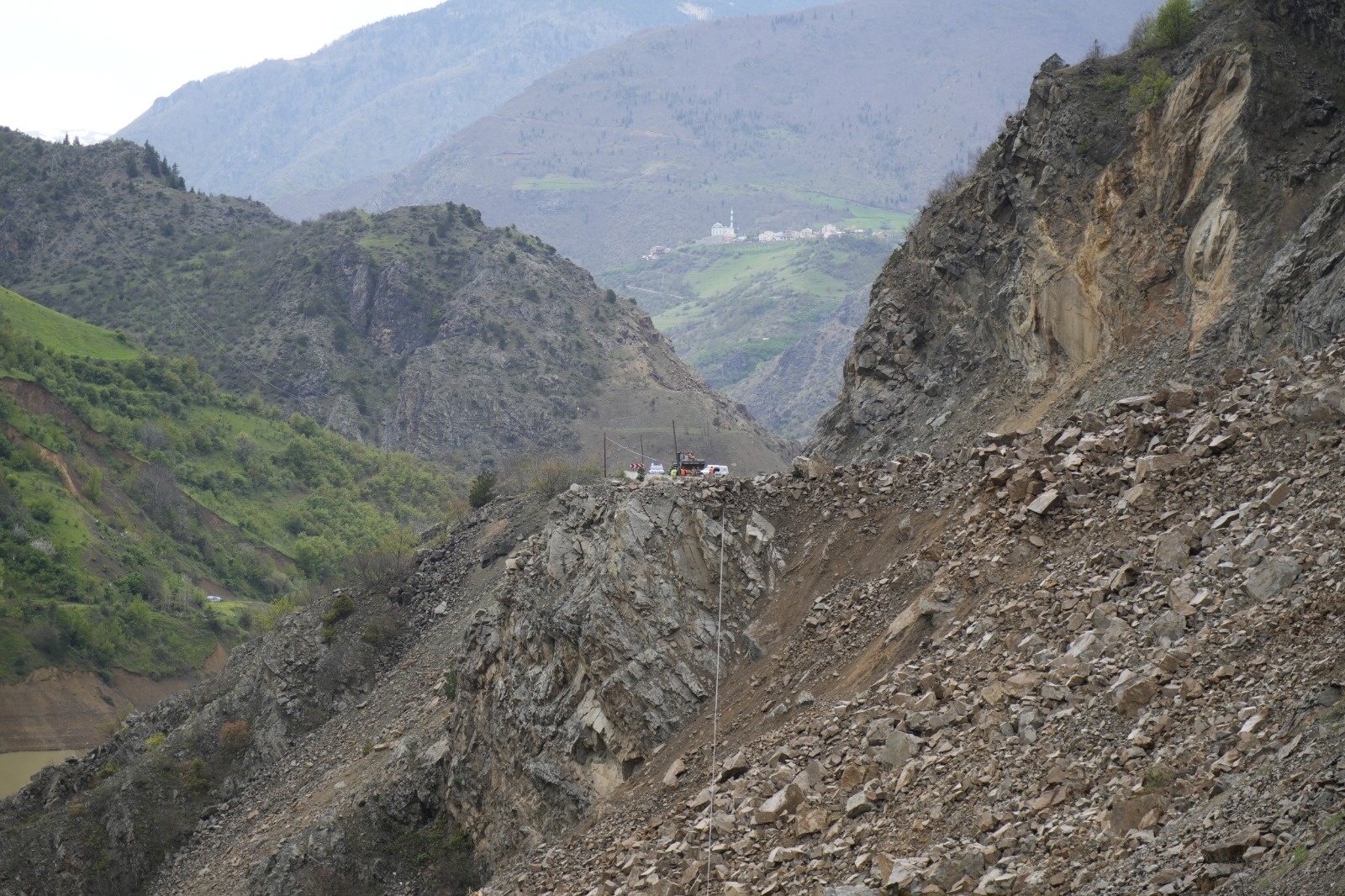 Bugün saat 16.20 sularında Torul-Kürtün Karayolu, Özkürtün Beldesi Karaçukur Mahallesi mevkii, Araköy köyü karşısında meydana gelen heyelan sonrası bölgede incelemelerde bulunan Vali Baruş, heyelan riskinin halen devam ettiğini belirterek yol temizleme çalışmalarına henüz başlanamadığını ifade etti.
