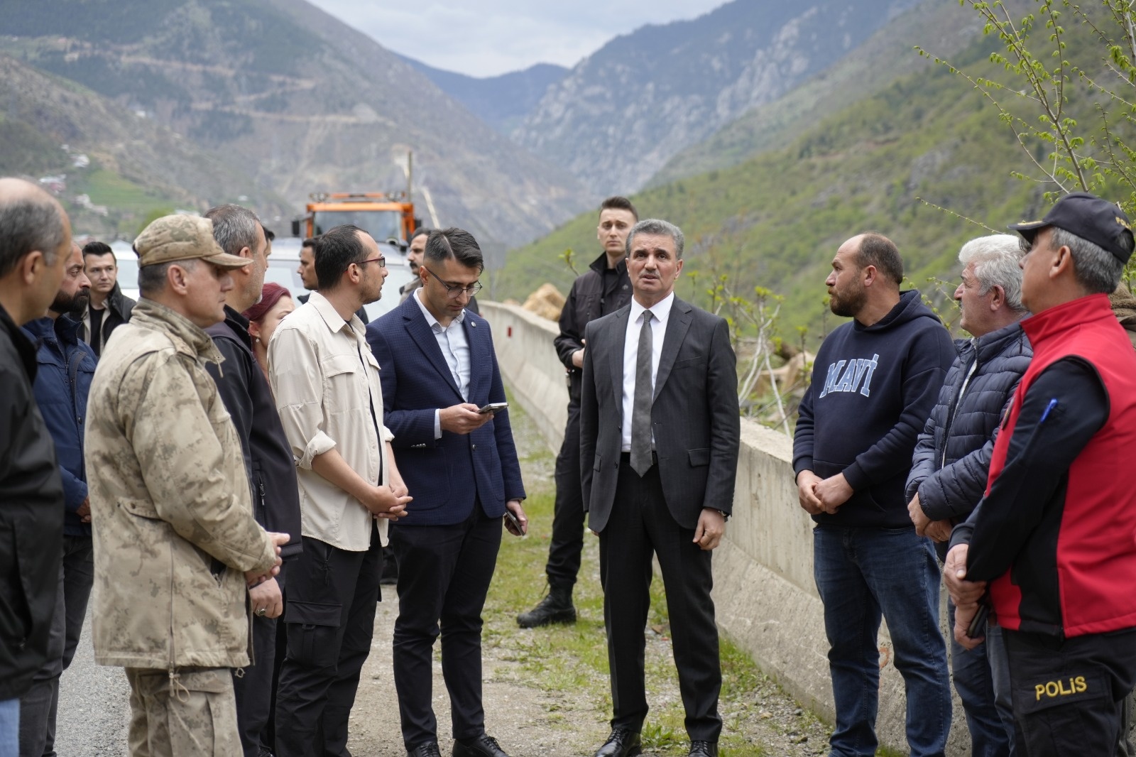 Vali Baruş açıklamasında şunları söyledi: “Bugün saat 16.20 sıralarında Kürtün yolunda Karaçukur dediğimiz mevkiinde yolun üst kısmından bulunan kayalıklardan ciddi bir akıntı oluyor, heyelan meydana geliyor. Bu heyelan neticesinde de karayolu çift taraflı olarak trafiğe kapatılıyor. Bu bölgede önceden bazı emareler görüldüğü için tedbir alınmıştı çok şükür herhangi bir ölüm, yaralanma ve kaza olayı meydana gelmedi.”