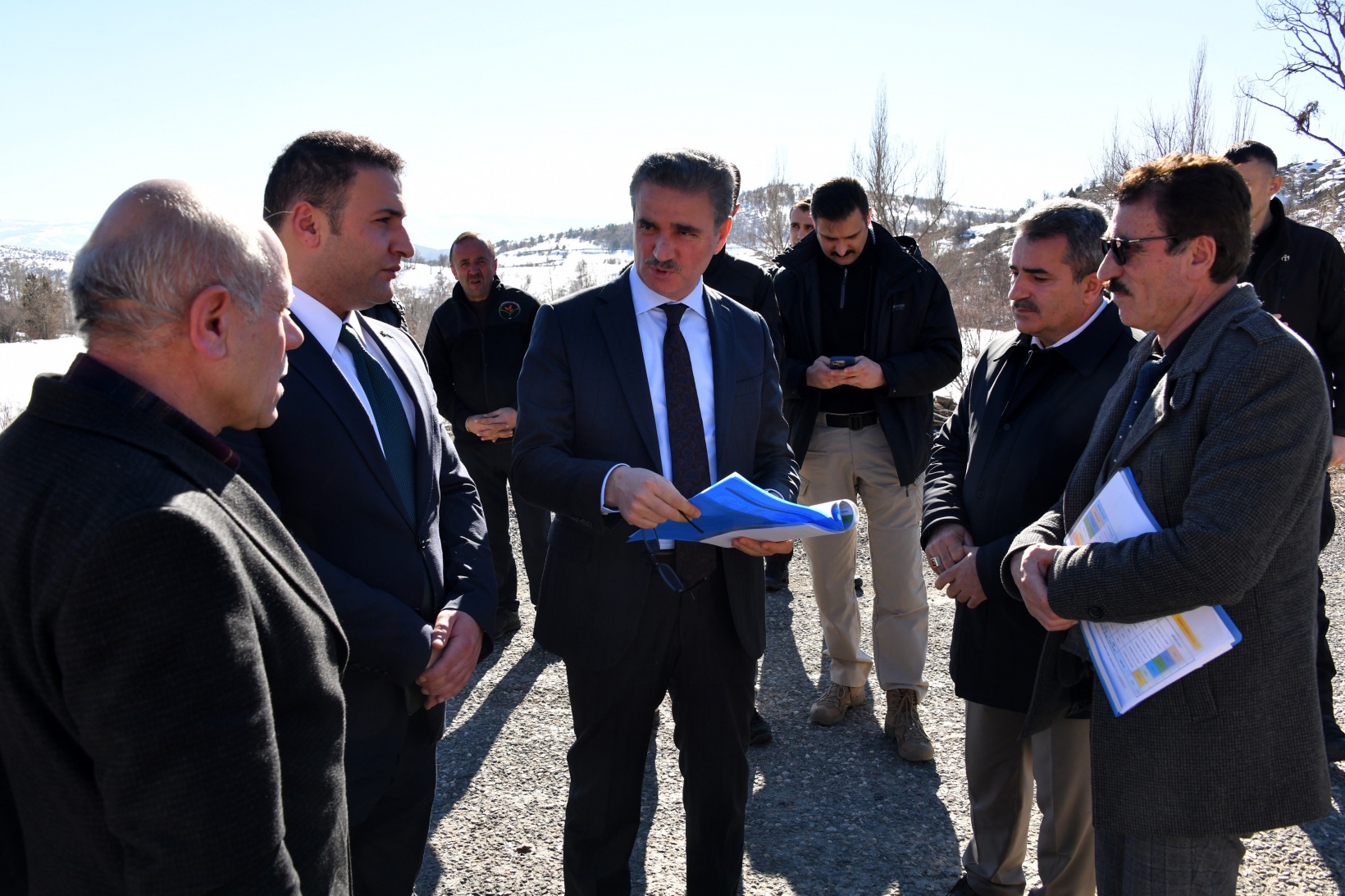 Daha sonra Kelkit ilçesine bağlı Söğütlü Beldesi ile ilçe merkezi arasında ulaşımı sağlayan yolda incelemelerde bulunan Vali Baruş, yolun mevcut durumu hakkında yetkililerden bilgi aldı.