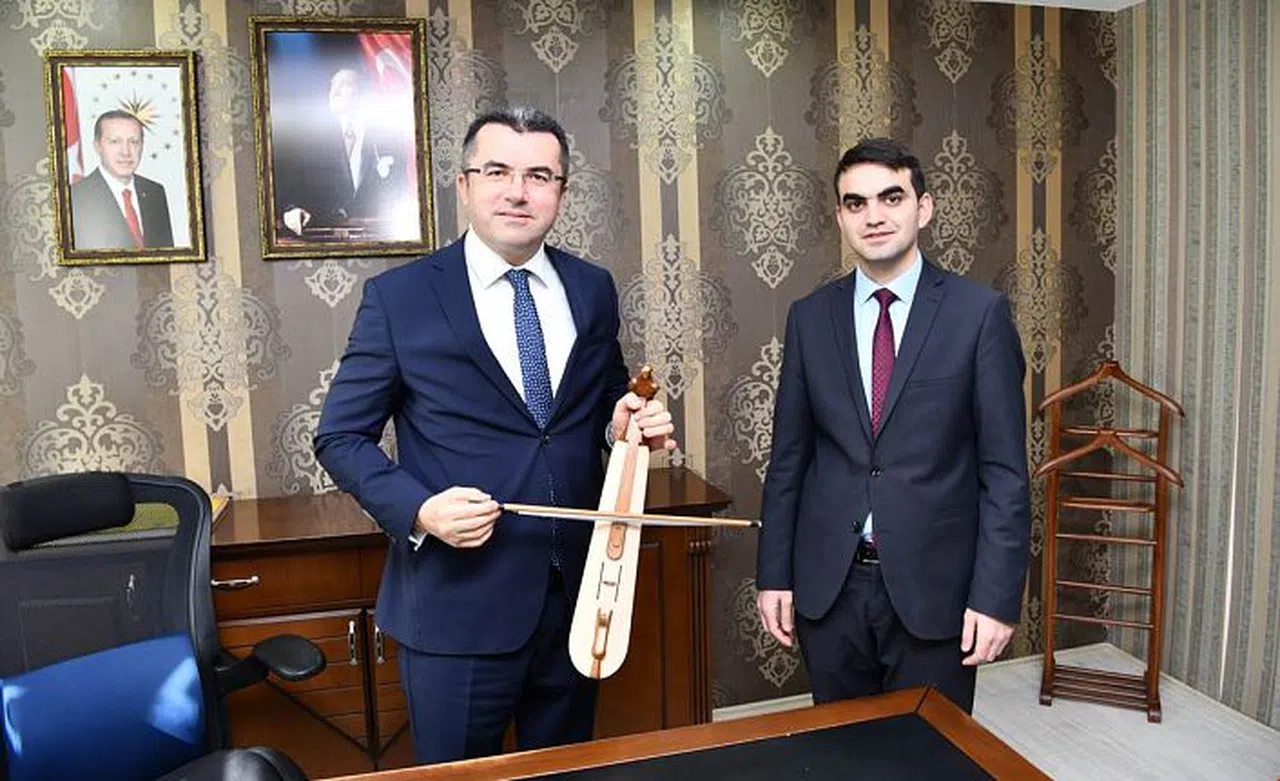 Daha sonra Torul İlçesine gelerek Kaymakamlığı ziyaret eden Vali Memiş’e Kaymakamlık ziyaretinde Kaymakam Vekili Hasan Hüseyin Alpaslan tarafından kemençe hediye edildi.