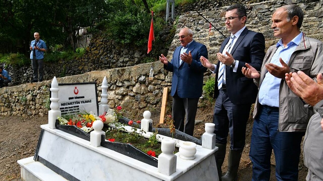 Beraberinde Torul Kaymakamı Furkan Berber, İlçe Özel İdaresi Müdürü Mahmut Şahinöz’le birlikte ilk olarak Demirkapı köyünde şehit öğretmen Necmettin Yılmaz’ın babası Hamit Yılmaz ile birlikte şehitlikte devam çalışmaları inceleyen ve şehidimizin mezarı başında dua eden Vali Memiş, köyde yapılan ve yapılacak olan çalışmalarla ilgili incelemede bulundu.