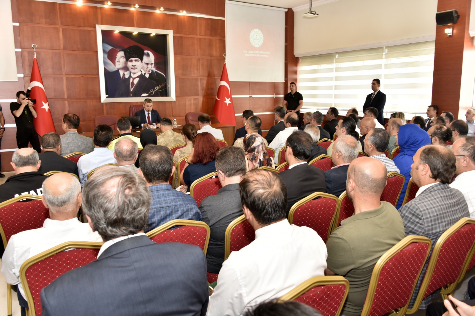 196 resmi ve özel okul ve kurumda toplam 19 bin 961 öğrenci ve yüzde 90'lık öğretmen doluluğuyla 11 Eylül’de başlayacak olan yeni eğitim öğretim yılı öncesinde düzenlenen toplantı Valilik Toplantı Salonunda gerçekleştirildi.