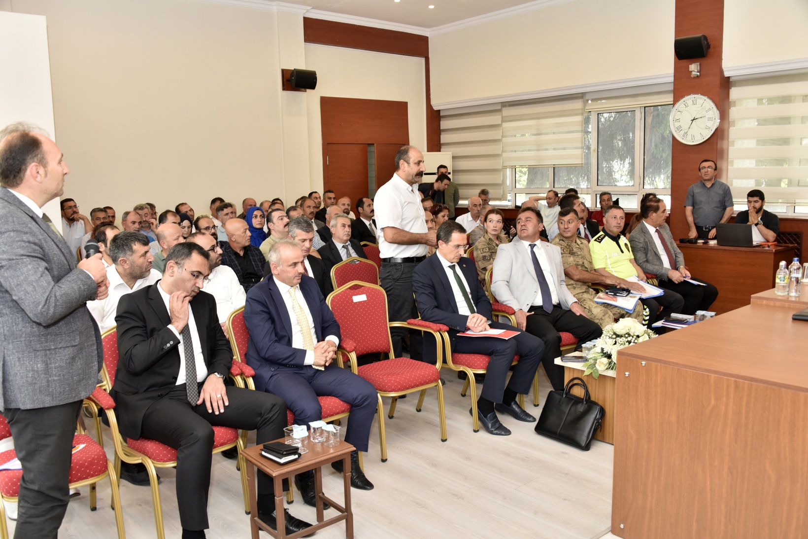 Açılış konuşmasının ardından sırasıyla İl Mili Eğitim Müdürlüğü, İl Emniyet Müdürlüğü ve İl Jandarma Komutanlığı amirleri sunum eşliğinde katılımcılara yeni eğitim öğretim yılında alınacak tedbirlerle ilgili bilgiler aktardı.