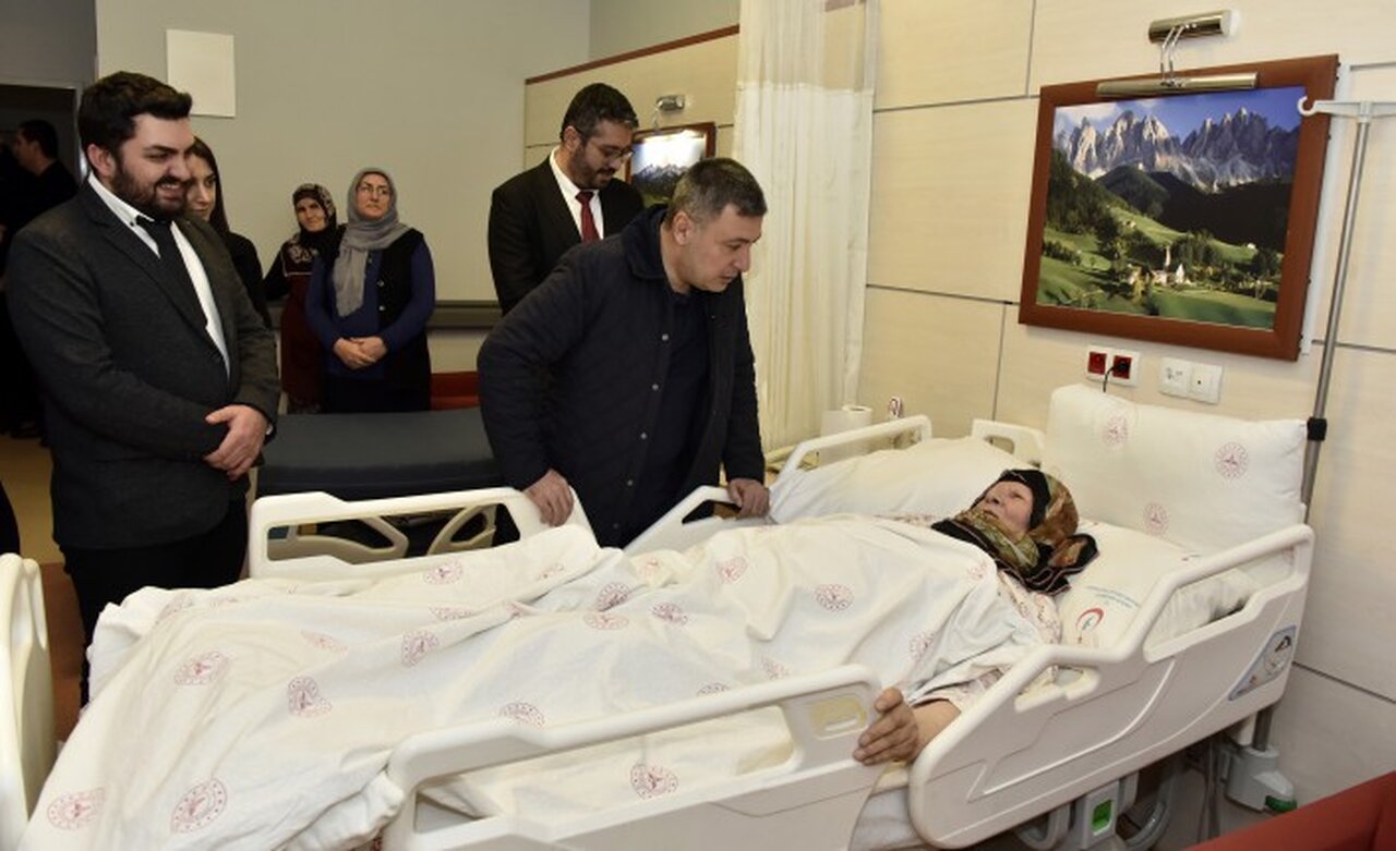 Burada bir annenin kızı için tekerlekli sandalye talebinin hemen yerine getirilmesi için talimat veren Vali Tanrısever, hastanede tedavi gören Şehit Polis Memuru Serdar Oğur'un annesi Azem Oğur’u ziyaret ederek doktorlarından durumu hakkında bilgi aldı.