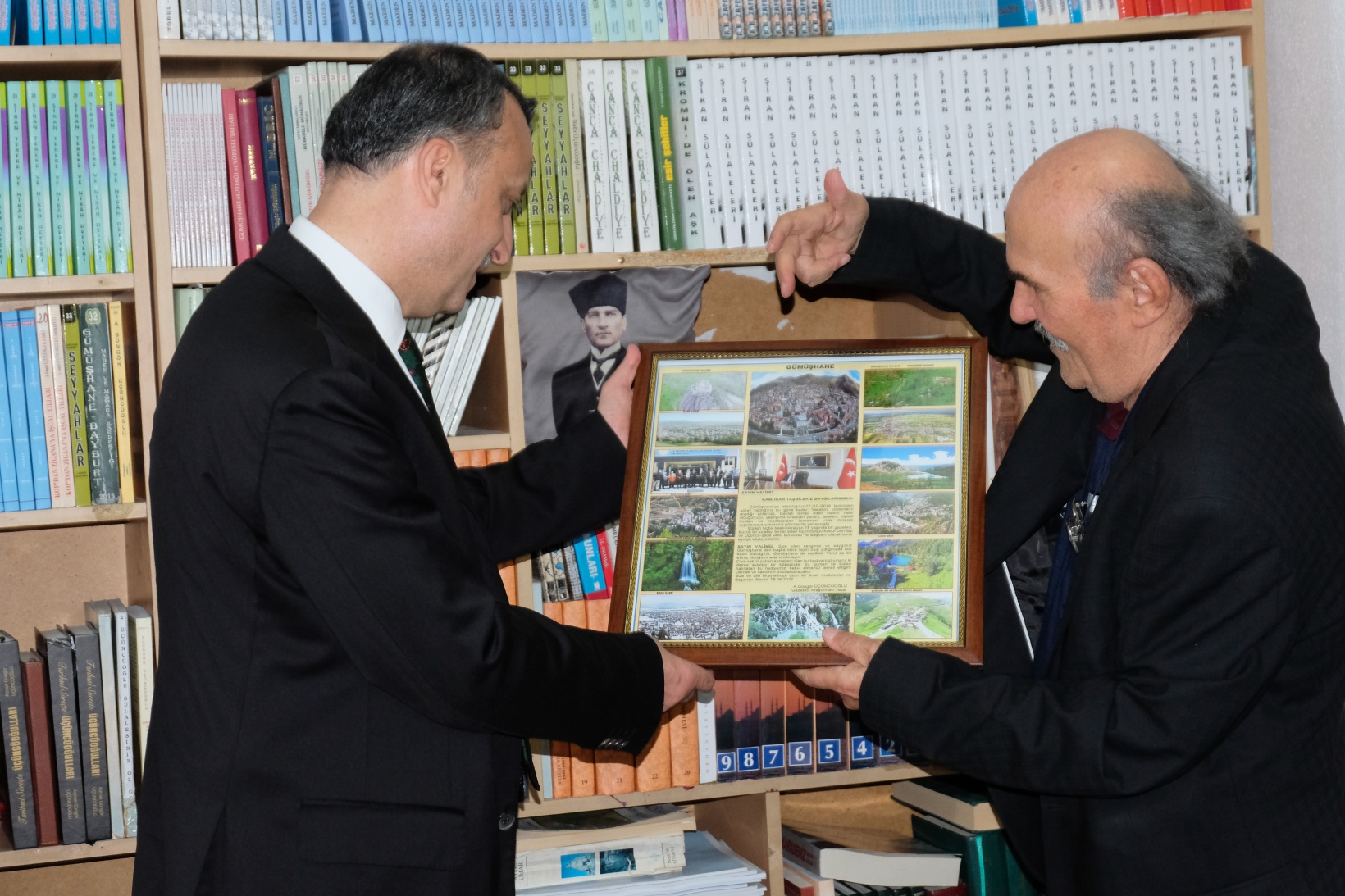 Ziyaretin sonunda Güngör Üçüncüoğlu tarafından Gümüşhane Valisi Kamuran Taşbilek’e Gümüşhane ilçelerinin fotoğrafları ve Vali Taşbilek’e özel olarak yazdığı yazının yer aldığı tabloyu hediye etti.