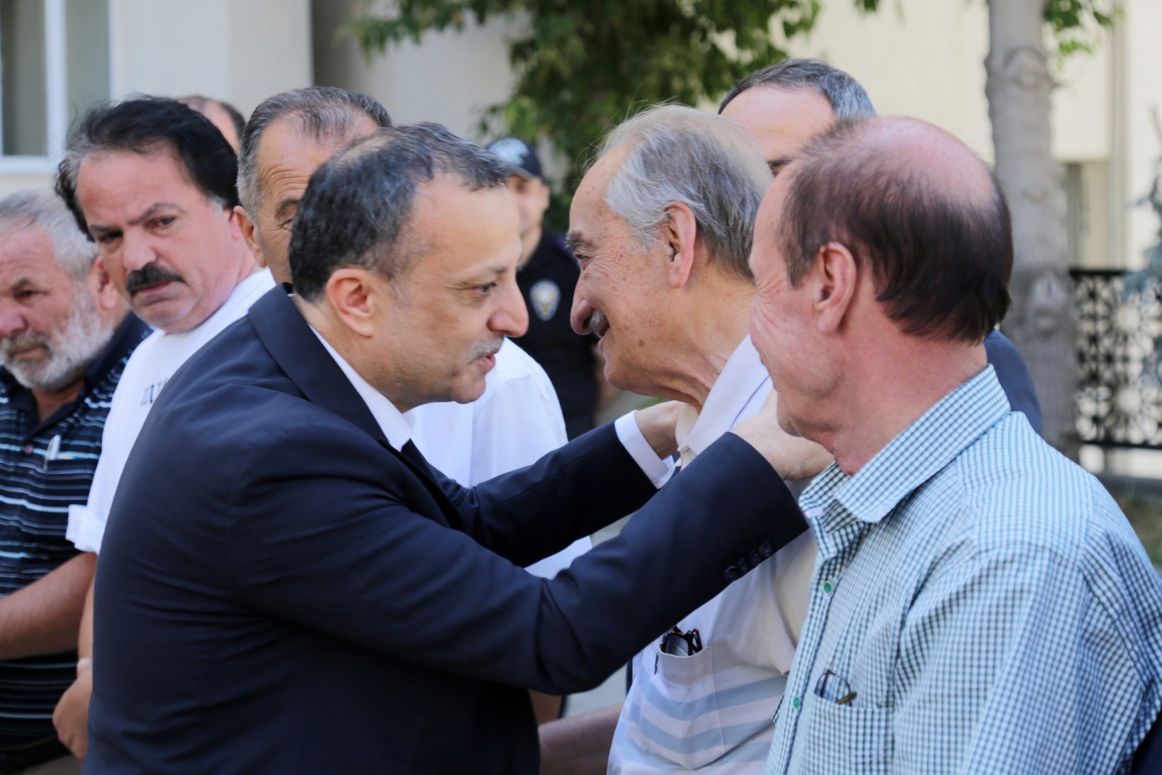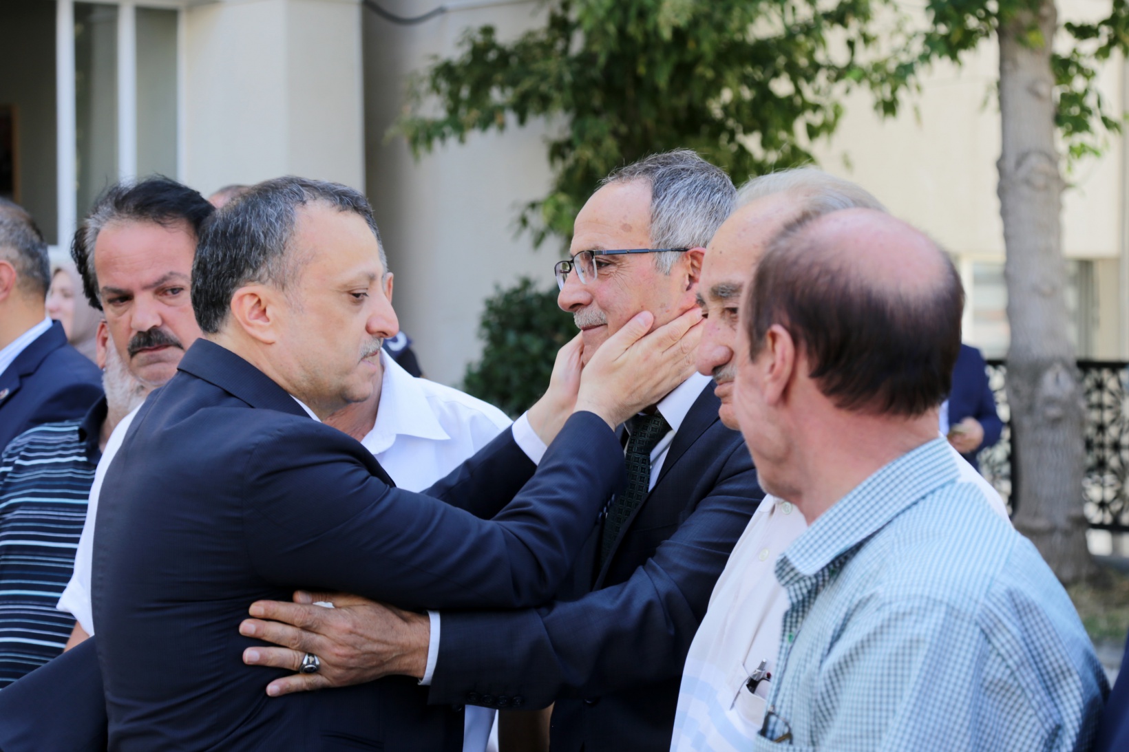 Valilik önünde oluşan uzun kuyrukta kendisini bekleyenlere tek tek sarılarak helallik alan Vali Taşbilek, gözyaşlarını tutamayan bazı vatandaşları da teselli etmek zorunda kaldı.