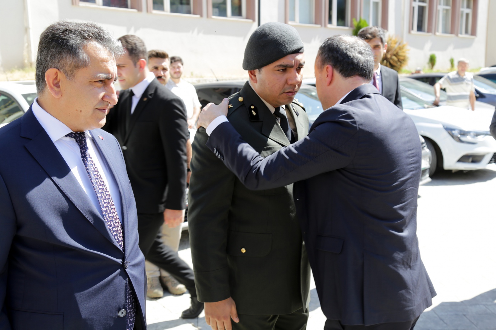 Hükümet Konağından uğurlanan Vali Taşbilek, bina girişinde kendisini bekleyen şehit ve gazi aileleriyle vedalaştıktan sonra tören mangasını selamladı.