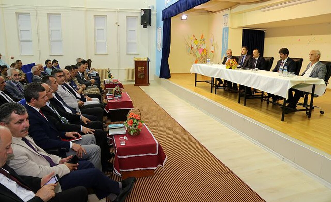 Vali Taşbilek, Kürtün temaslarının ardından bu kez Torul ilçesindeki köy ve mahalle muhtarlarıyla Şehit Tamer Özdemir Anadolu Lisesi salonunda bir araya geldi.