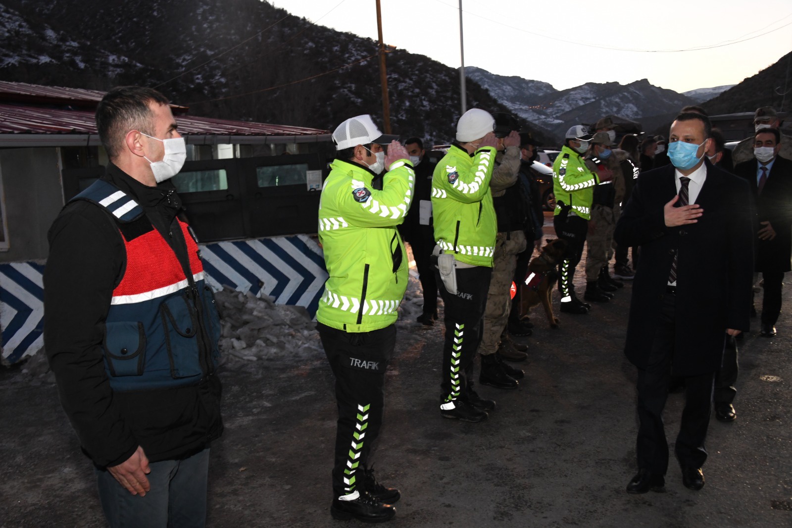 Ardından İl Jandarma Komutanlığını ziyaret ederek buradaki şeref defterini imzalayan Vali Taşbilek ve beraberindeki heyet daha sonra İtfaiye müdürlüğü ile Akçakale ve İkisu güvenlik noktalarını ziyaret etti, incelemelerde bulundu ve çalışanların yeni yıllarını kutladı.