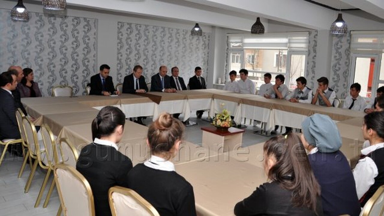 Vali Yardımcısı İsmail Özkan, İl Milli Eğitim Müdürü Muhammet Şahinkaya'nın katıldığı sohbette Vali Yavuz, okul hakkında Okul Müdürü Hamit Tanış'tan bilgi aldı.