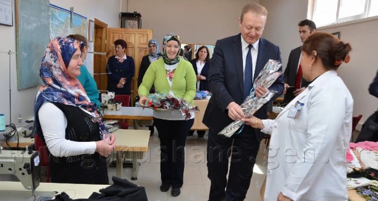 Halk Eğitim Merkezi bünyesinde bulunan bütün kursları gezerek kadın kursiyerlerin 8 Mart Dünya Kadınlar Günü’nü kutlayan Vali Yavuz, “Kadınların gününü bir güne sığdırmamak gerekir, bir gün değil bütün günler kadınlarımızın.” dedi.