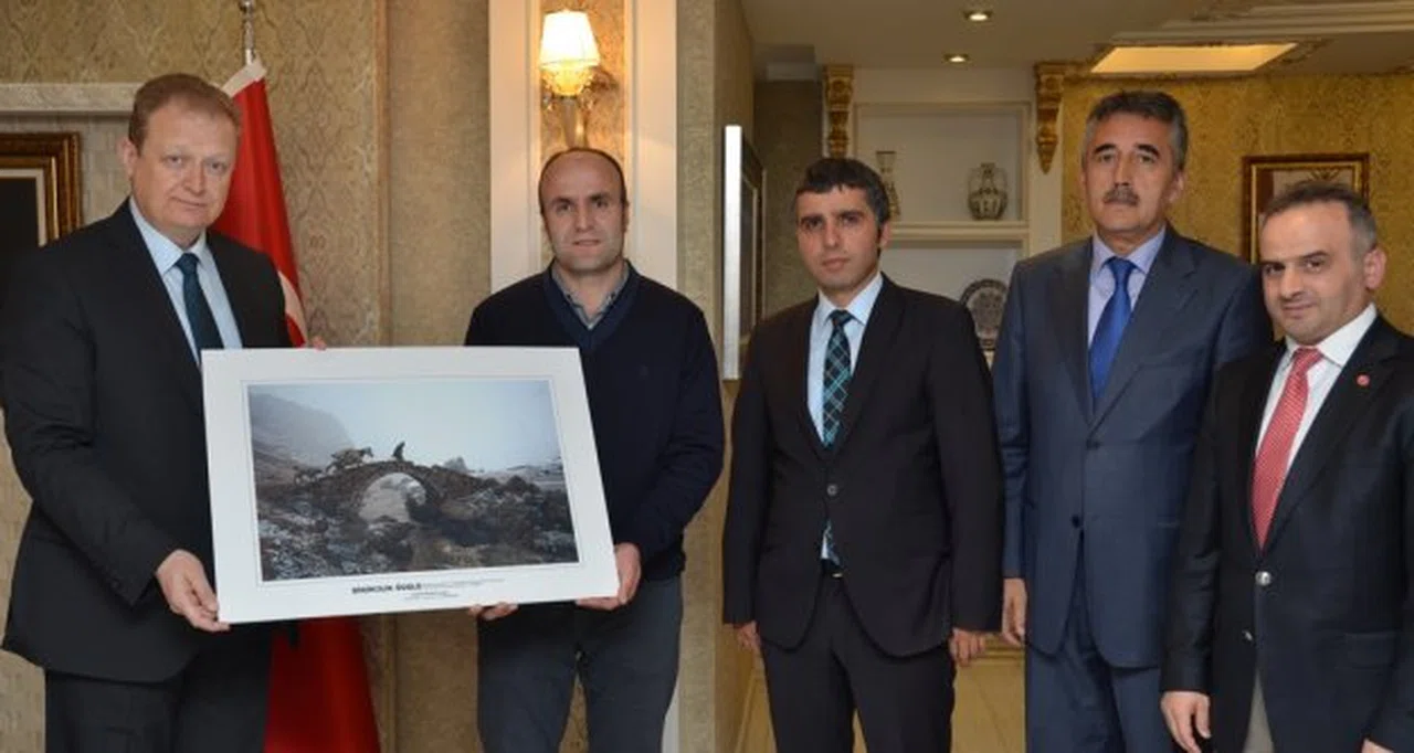 Vali Yardımcısı Şenol Turan, Özel Kalem Müdürü Kemalettin Demirkıran ile Basın ve Halkla İlişkiler Müdürü Engin Doğru’nun da hazır bulunduğu ziyarette Mustafa Zengin, ödüllü fotoğrafını Vali Yavuz’a hediye etti.