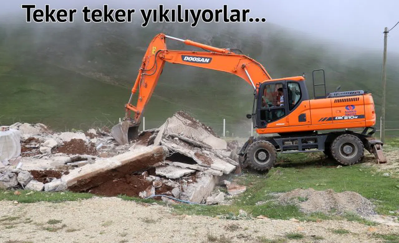 Geçtiğimiz hafta Vali Kamuran Taşbilek’in imzasıyla yayımlanan ‘Yaylalarda mevzuata aykırı yapılaşma’ konulu Valilik Genel Emri doğrultusunda yeni ev yapılmak için açılan yerler ile yapımına yeni başlandığı için henüz tamamlanmamış binaların yıkımına başlandı.