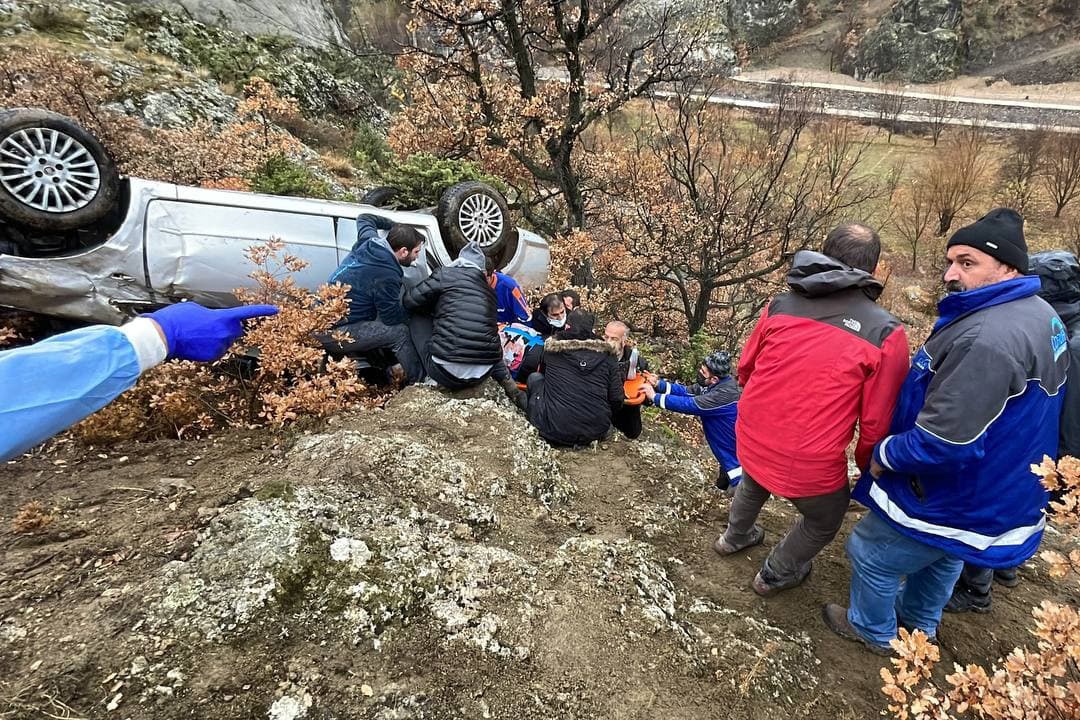Virajı alamayan otomobil 45 metrelik uçuruma yuvarlandı: 4 yaralı 5