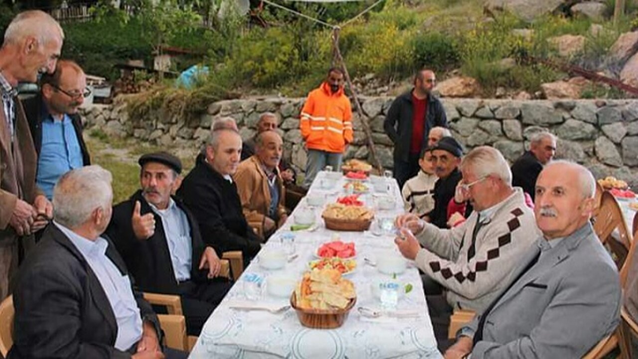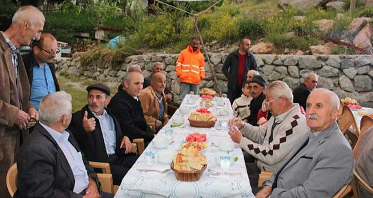 Gümüşhane Köy ve Mahalle Muhtarları Başkanı Gürbüz Demir başta olmak üzere köy sakinlerinden erkek ve kadınların katıldığı iftar programında vatandaşlar bir araya gelmenin