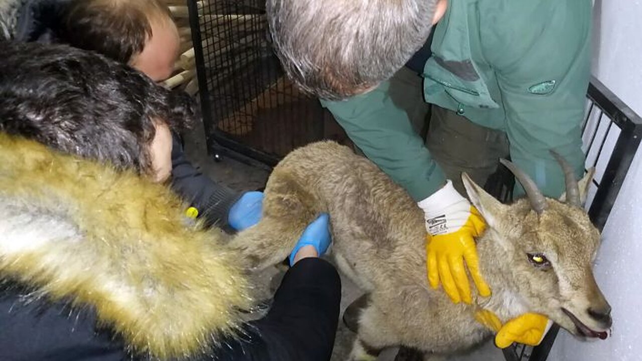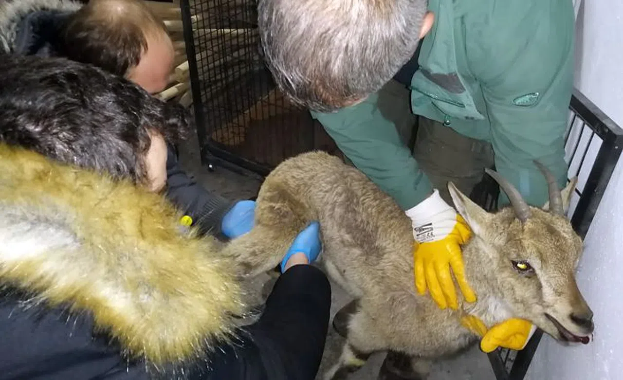 Olay yerinde yapılan ilk incelemede yaban keçisinin ayağında sorun olduğu için yürüyemediği tespit edildi.