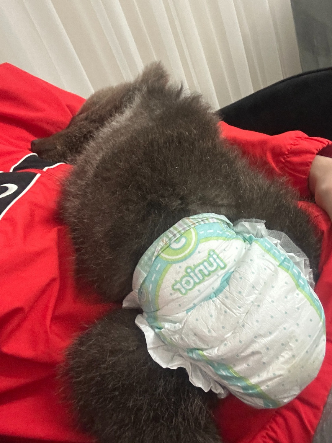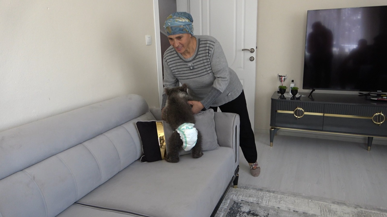 Annesinin öldüğü değerlendirilen yavru ayıyı evinde besleyen ve evi kirletmemesi için bebek bezi bağlayan Berker yavru ayıya ‘Yogi’ ismini verdi.
