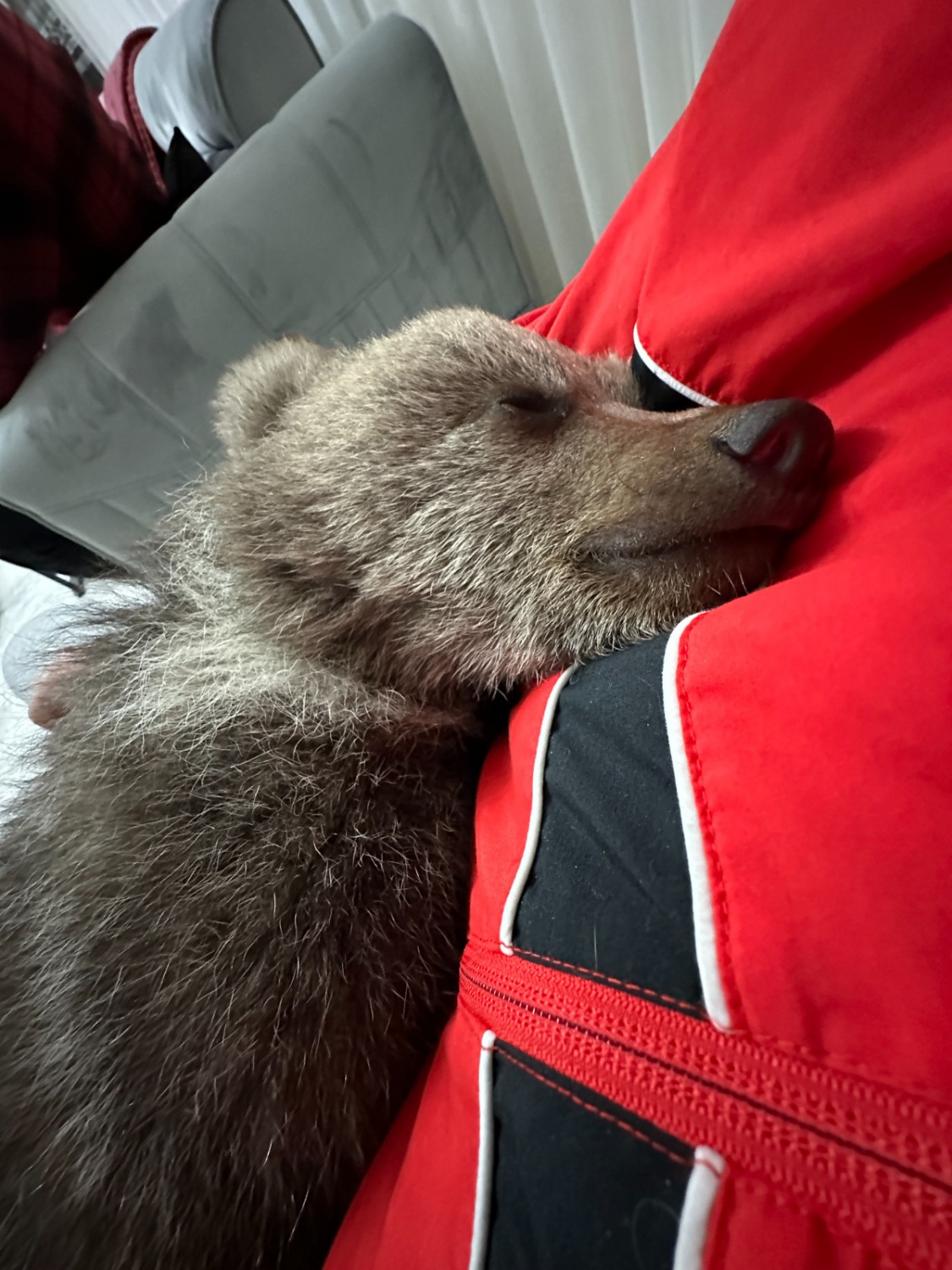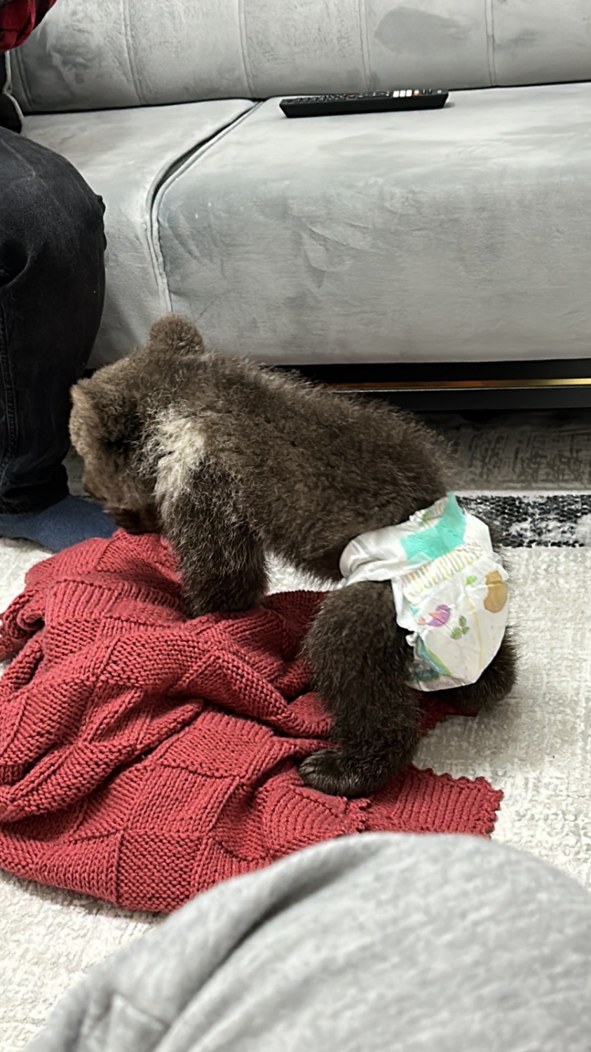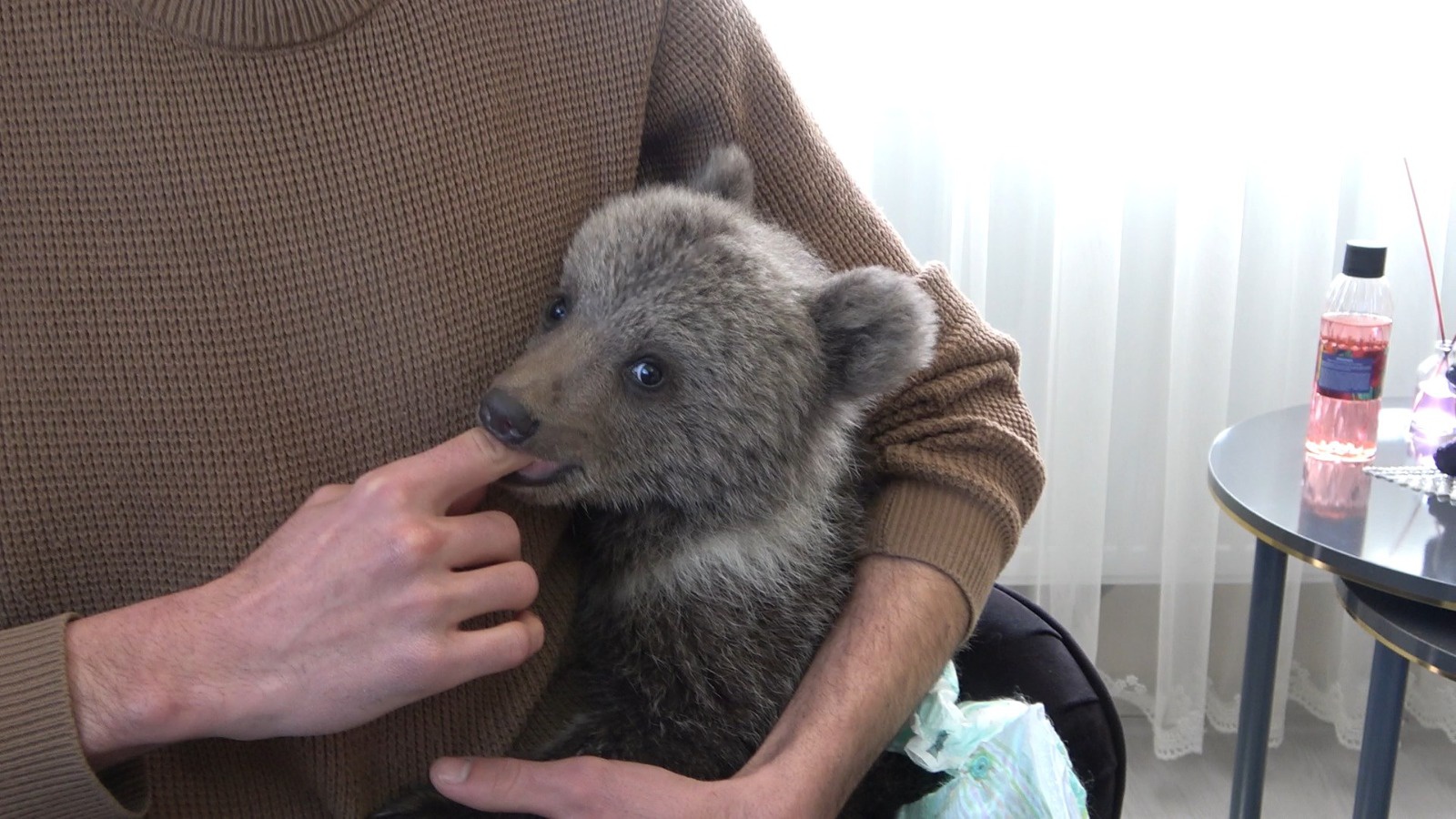 Yetkililerin bulunduğu yere bırakmasını istediği yavru ayıyı, bitkin durumda olduğu için bırakmaya gönlü el vermeyen Berker hayvanı evine götürerek beslemeye başladı.