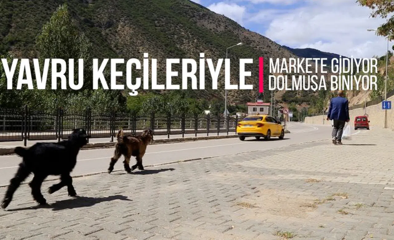 Gümüşhane’de yaşayan İzzettin Bilici, 15 günlükken aldığı ve “Fındık” ve “Kara Kız” adını verdiği 2 yavru keçisiyle yürüyüşe çıkıyor, markete gidiyor, dolmuşa biniyor, aile hekiminde muayene oluyor, haftada bir gün banyo ettiriyor.