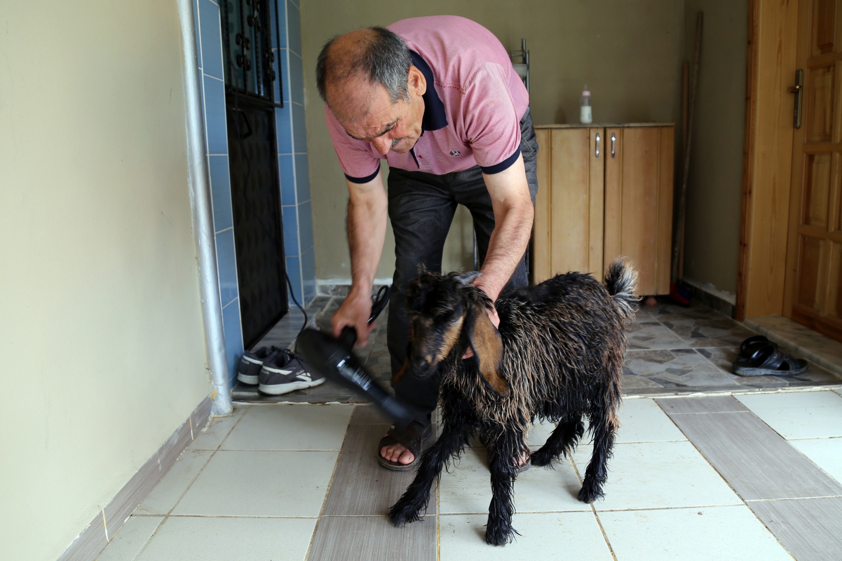Yavru keçileri kaşınmaya başladıkları an evinin banyosuna sokarak şampuanla yıkayıp saç kurutma makinesiyle kurulayan Bilici, Fındık ve Kara Kız sayesinde stresten arındığını söyledi.