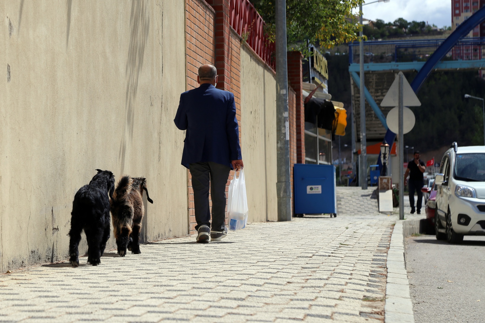 Keçileri Zigana dağında 15 günlükken aldığını, ölen hayvanların yerine yenisini aldığını anlatan Bilici, “Haftada bir defa banyo yaptırıyorum. Dolaştırıyorum kendimle. Nereye gitsem onlar benimle. Parka, yürüyerek merkeze götürüyorum. Otogara gidiyorum. Orada yemek yerken onlarla geliyorum. Yoruldukları zaman dolmuşa binip getiriyorum” diye konuştu.